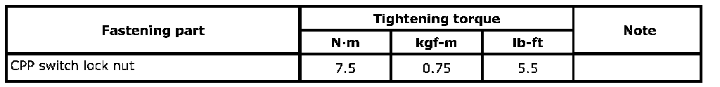 For the tightening torque of fastener not specified in this section, refer to Fastener Information.