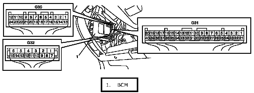 Connector Layout Diagram of BCM - BCM Connectors (Viewed From Harness Side):