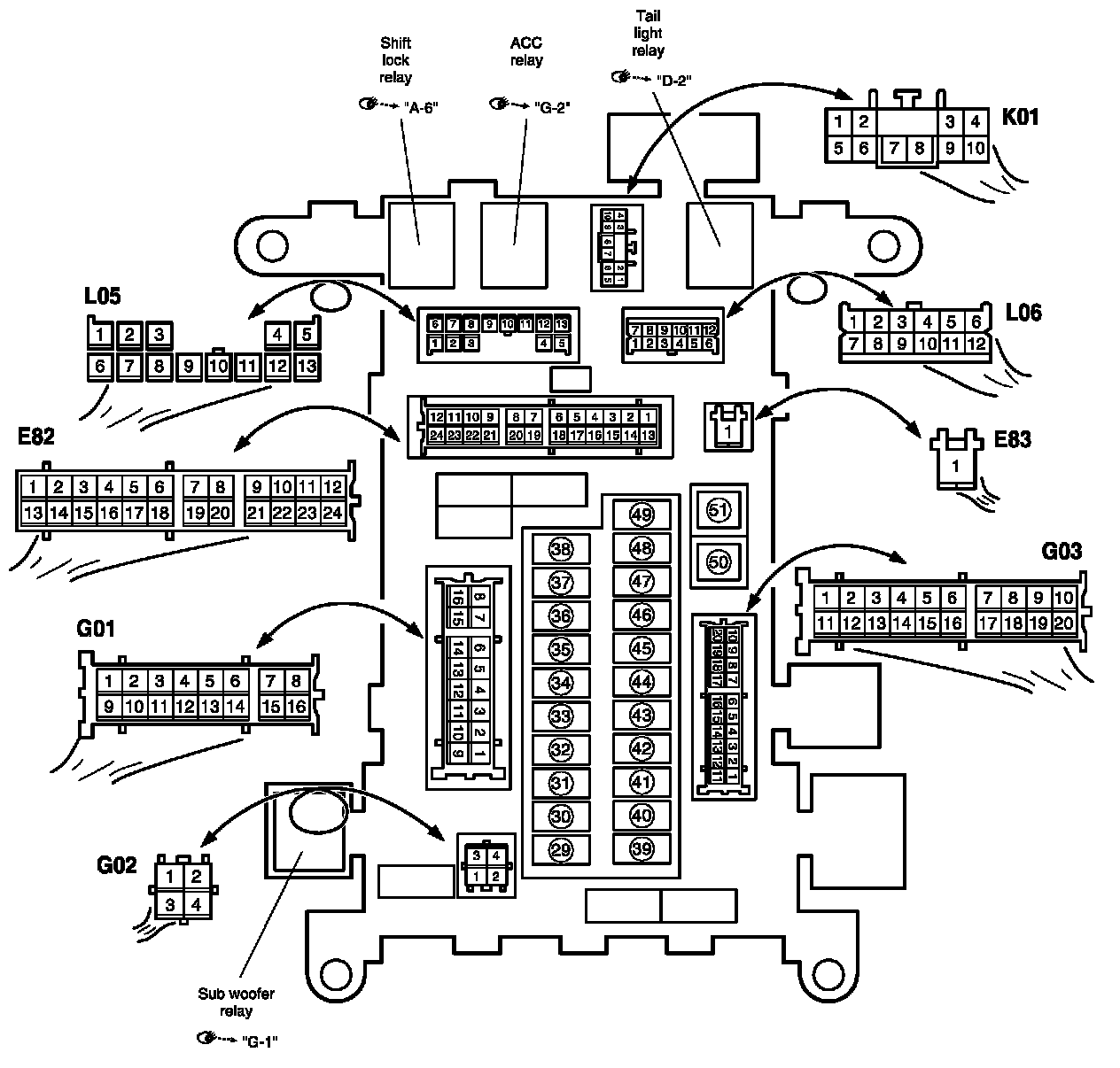 Junction Block (J/B) Connector / Fuse Layout: