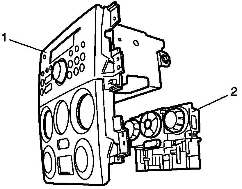 3. Remove HVAC control module mounting screws and then, remove HVAC control module (2) from center garnish (1).