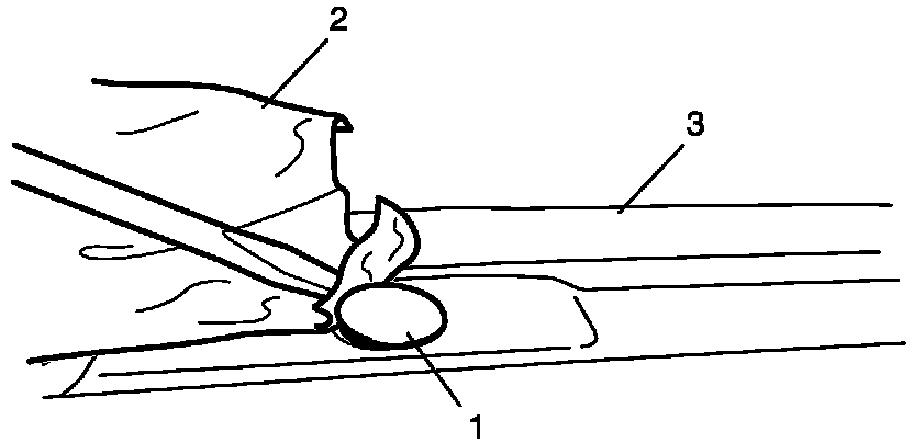 2. Detach sunload sensor (1) located on the driver side of the dashboard (3). Be careful not to damage the sensor and dashboard by using rag (2).