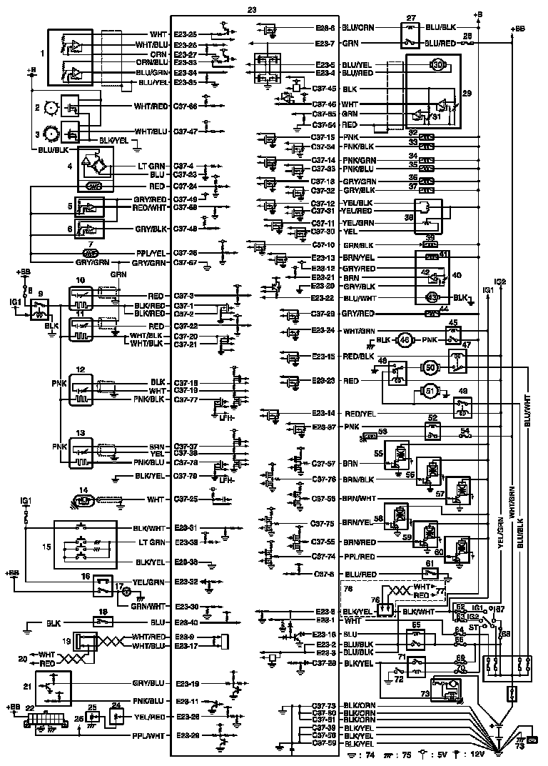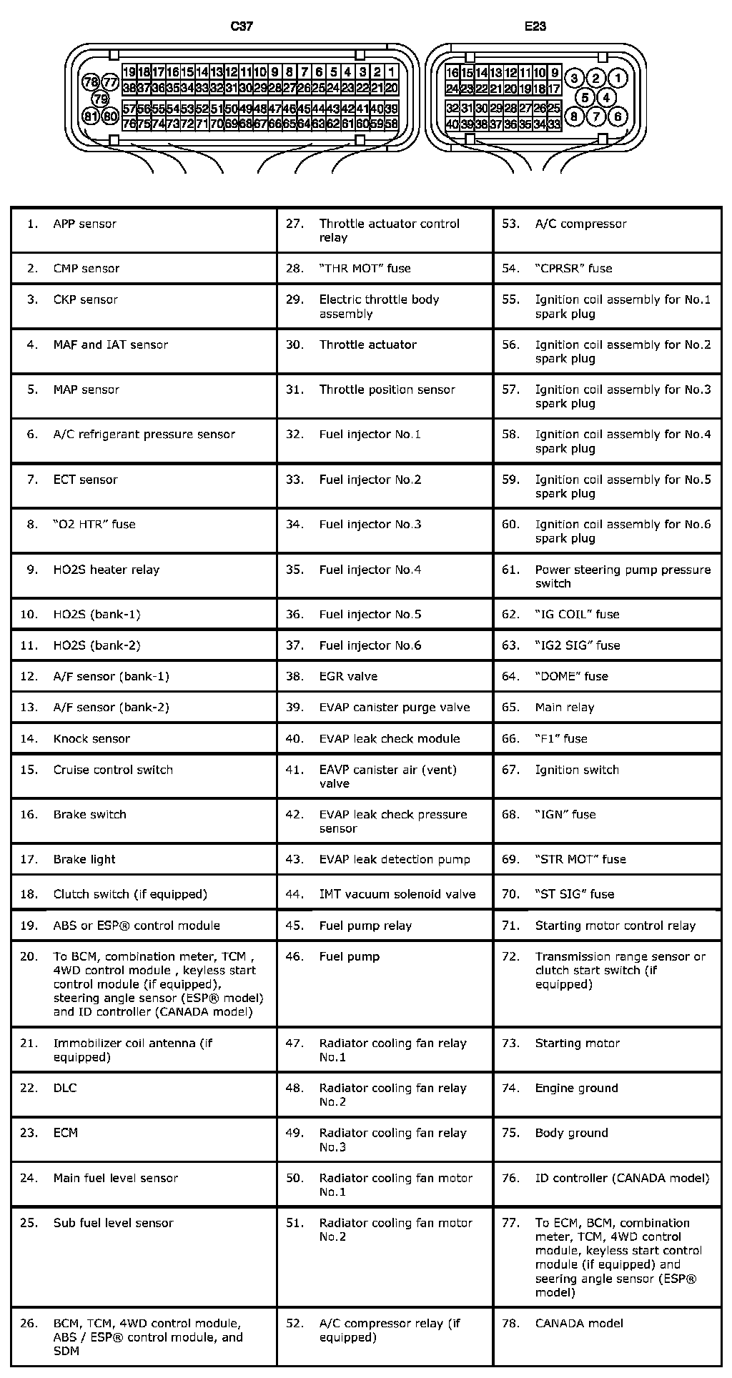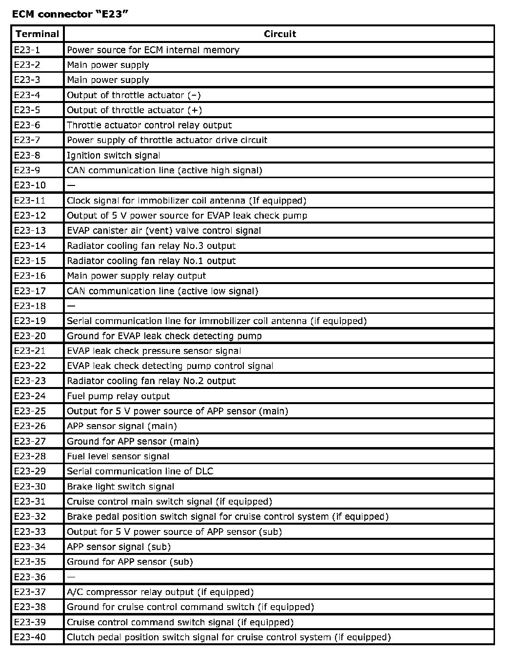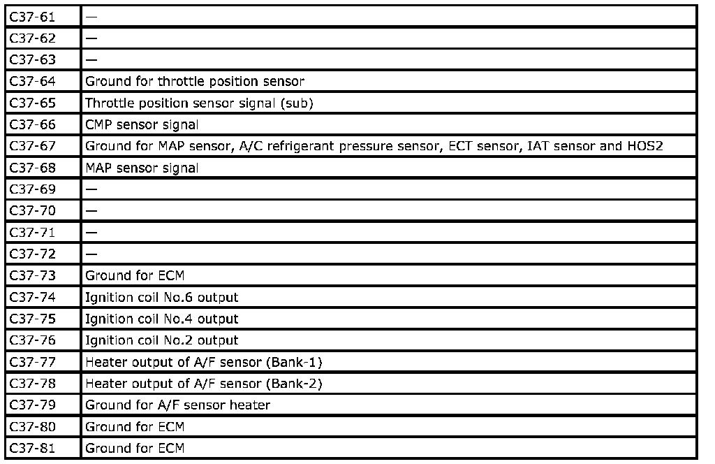 Terminal arrangement of ECM (PCM) connector (Viewed from harness side):