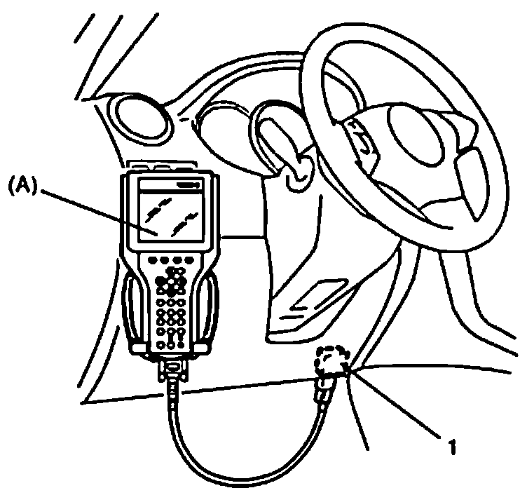 4. Connect SUZUKI scan tool to DLC (1) with ignition switch OFF, restart engine and fix ignition timing by using fixed spark mode of SUZUKI scan tool.