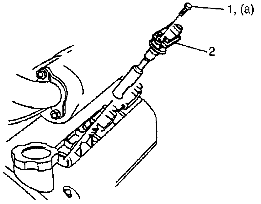 3. Remove ignition coil bolt (1), and then pull out ignition coil assembly (2).