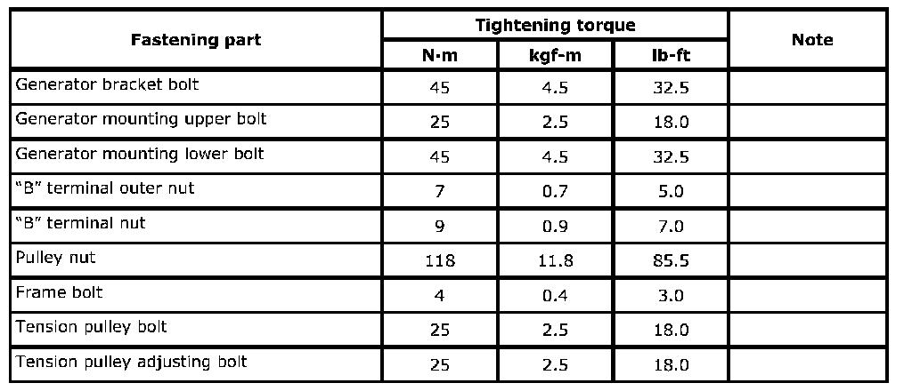 NOTE: The specified tightening torque is also described in the following. Generator Components