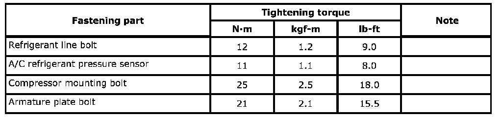For the tightening torque of fastener not specified in this section, refer to Fastener Information.