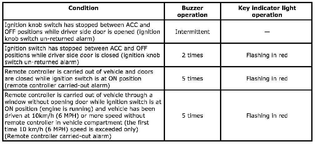 makes the key indicator light flash in red and the buzzer sound to call the driver s attention.