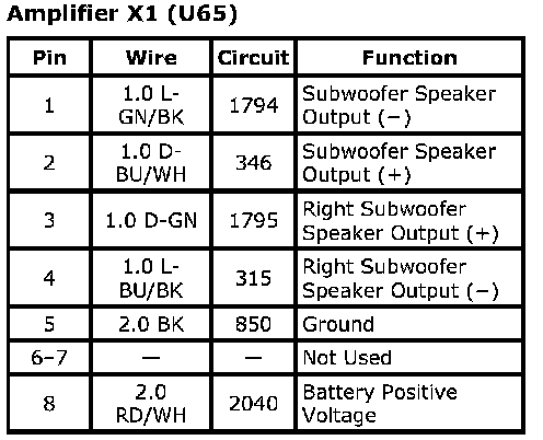 Amplifier X1 (U65)Connector Part Information