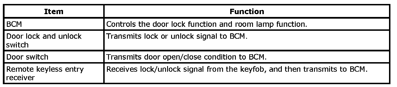 Door Lock Function: Component Description [Remote Keyless Entry]