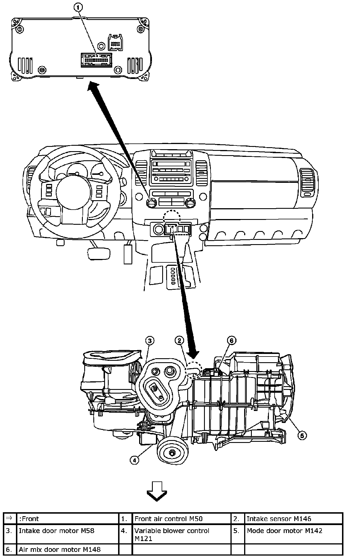 Heater and Air Conditioning Control System: Component Part Location