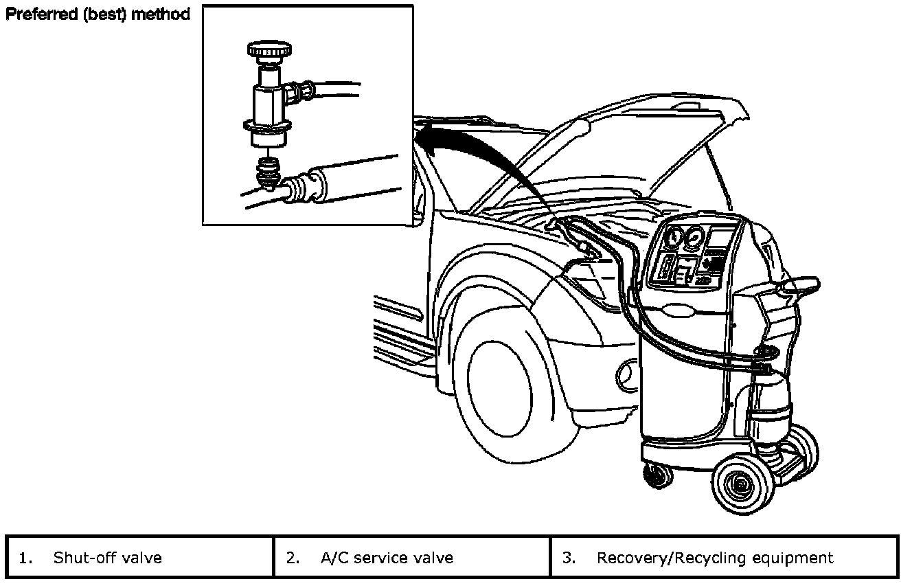 WARNING: Avoid breathing A/C refrigerant and oil vapor or mist. Exposure may irritate eyes, nose and throat. Remove HFC-134a (R-134a) refrigerant from the A/C system using certified service equipment meeting requirements of SAE J2210 HFC-134a (R-134a) recycling equipment or SAE J2201 HFC-134a (R-134a) recovery equipment. If an accidental system discharge occurs, ventilate the work area before resuming service. Additional health and safety information may be obtained from the refrigerant and oil manufacturers.