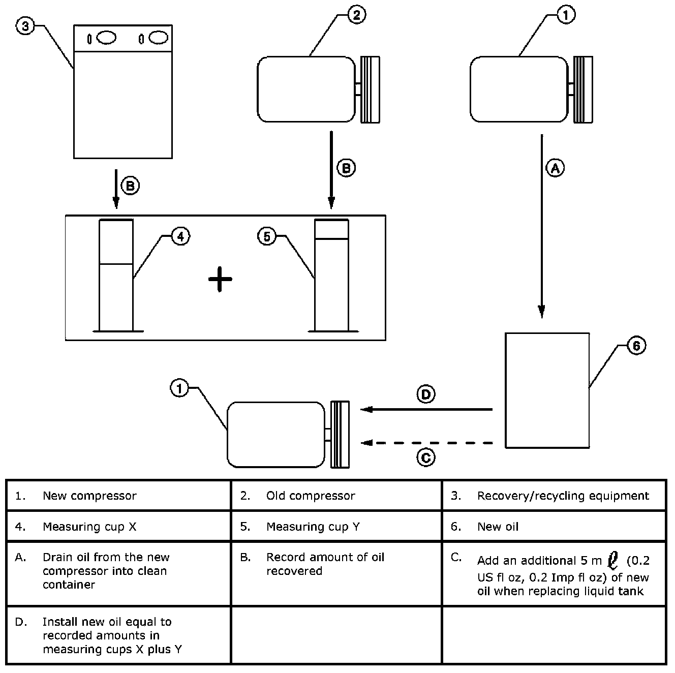 Do not add this 5 ml (0.2 US fl oz, 0.2 Imp fl oz) of oil if only replacing the compressor.