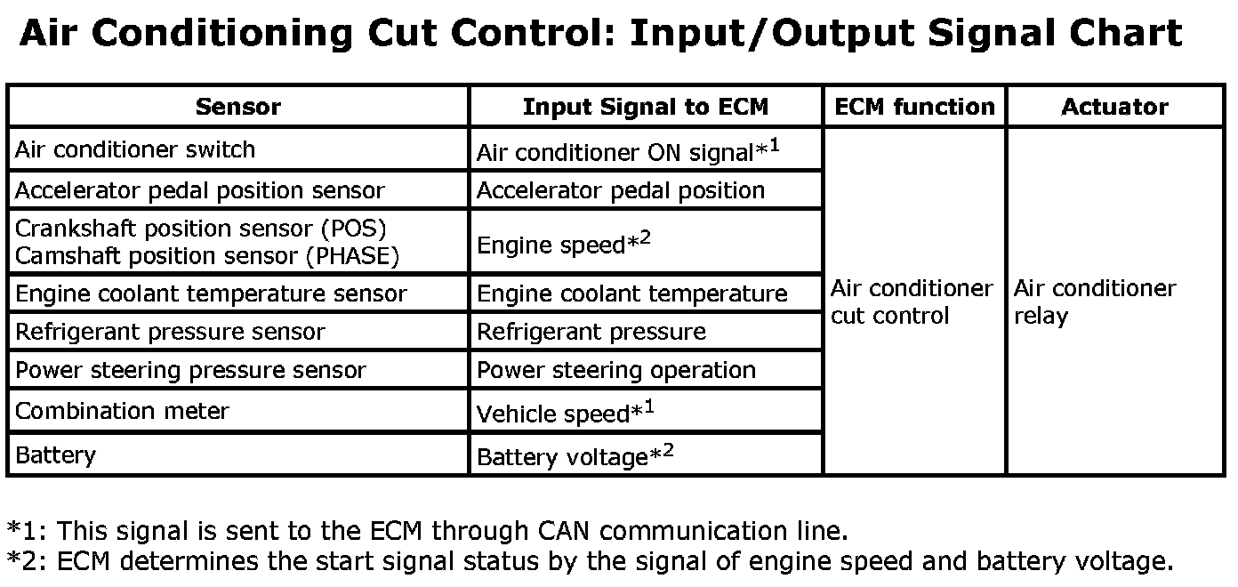 Air Conditioning Cut Control: Input/Output Signal ChartAir Conditioning Cut Control: System Description