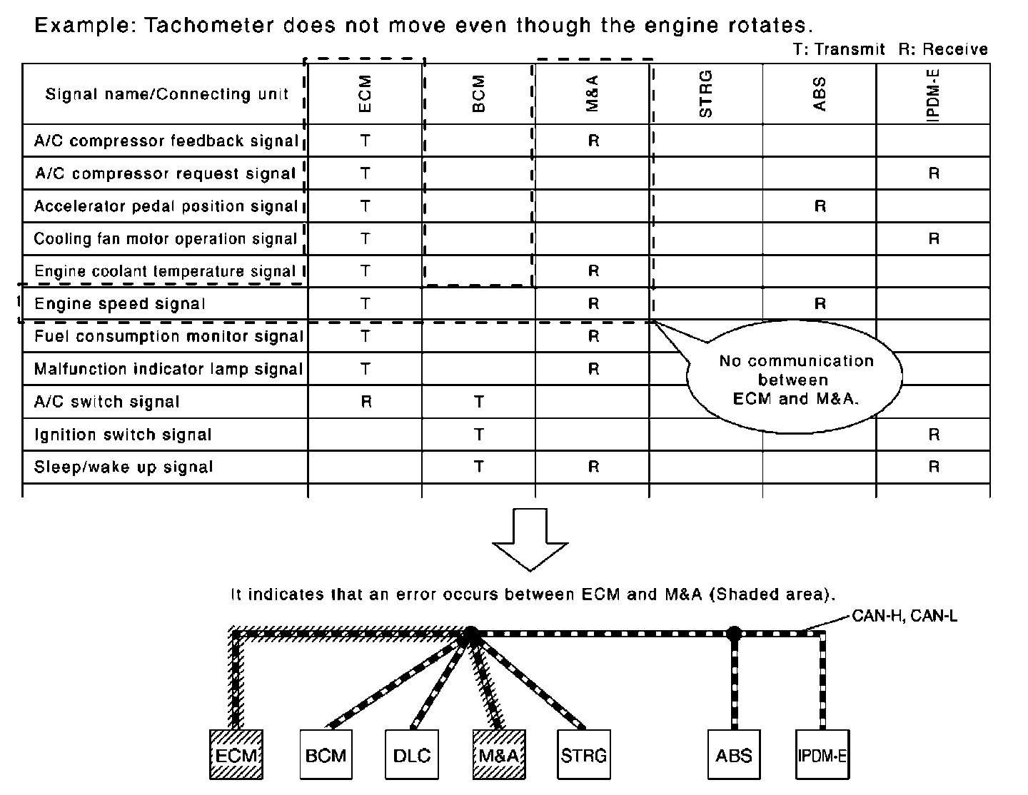 How to Use CAN Communication Signal ChartThe CAN communication signal chart lists the signals needed for trouble diagnosis. It is useful for detecting the root cause by finding a signal related to the symptom, and by checking transmission and reception unit.