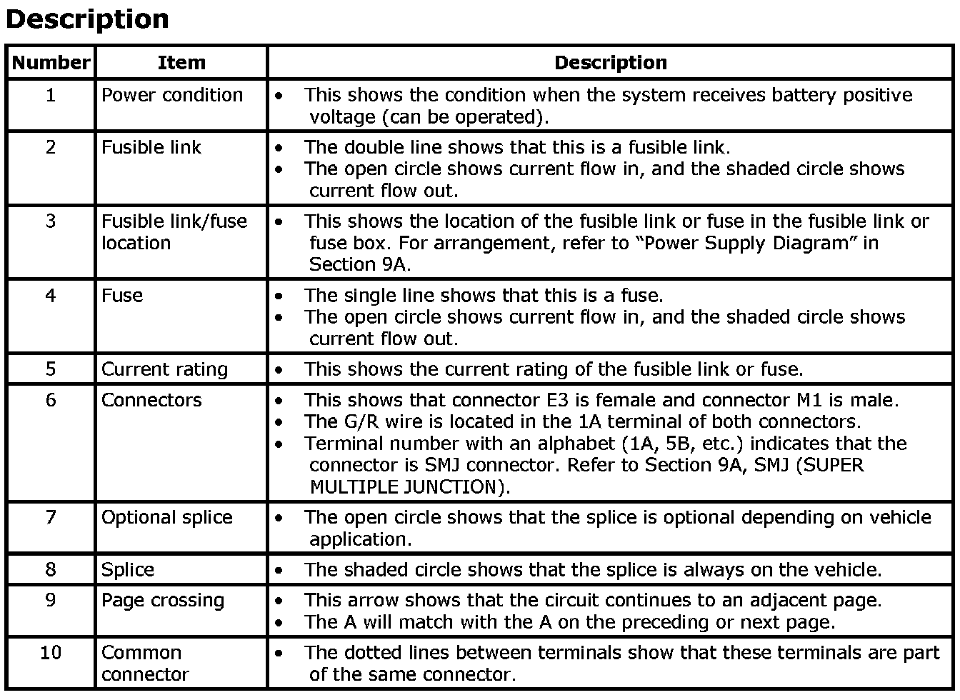 - Connector symbols shown from the terminal side are enclosed by a single line and followed by the direction mark.