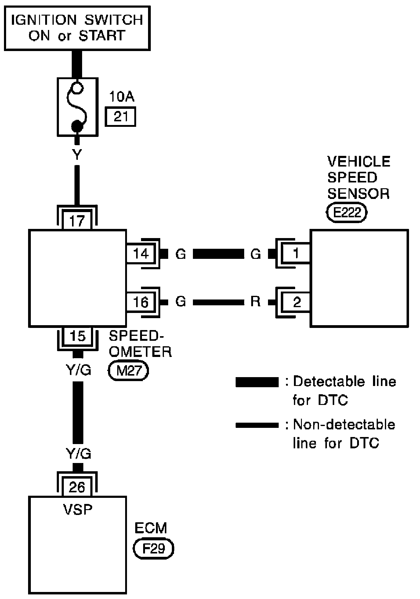 - A line with less weight (thinner line) represents a "non-detectable line for DTC". A "non-detectable line for DTC" is a circuit in which ECM cannot detect its malfunctions with the on board diagnostic system.
