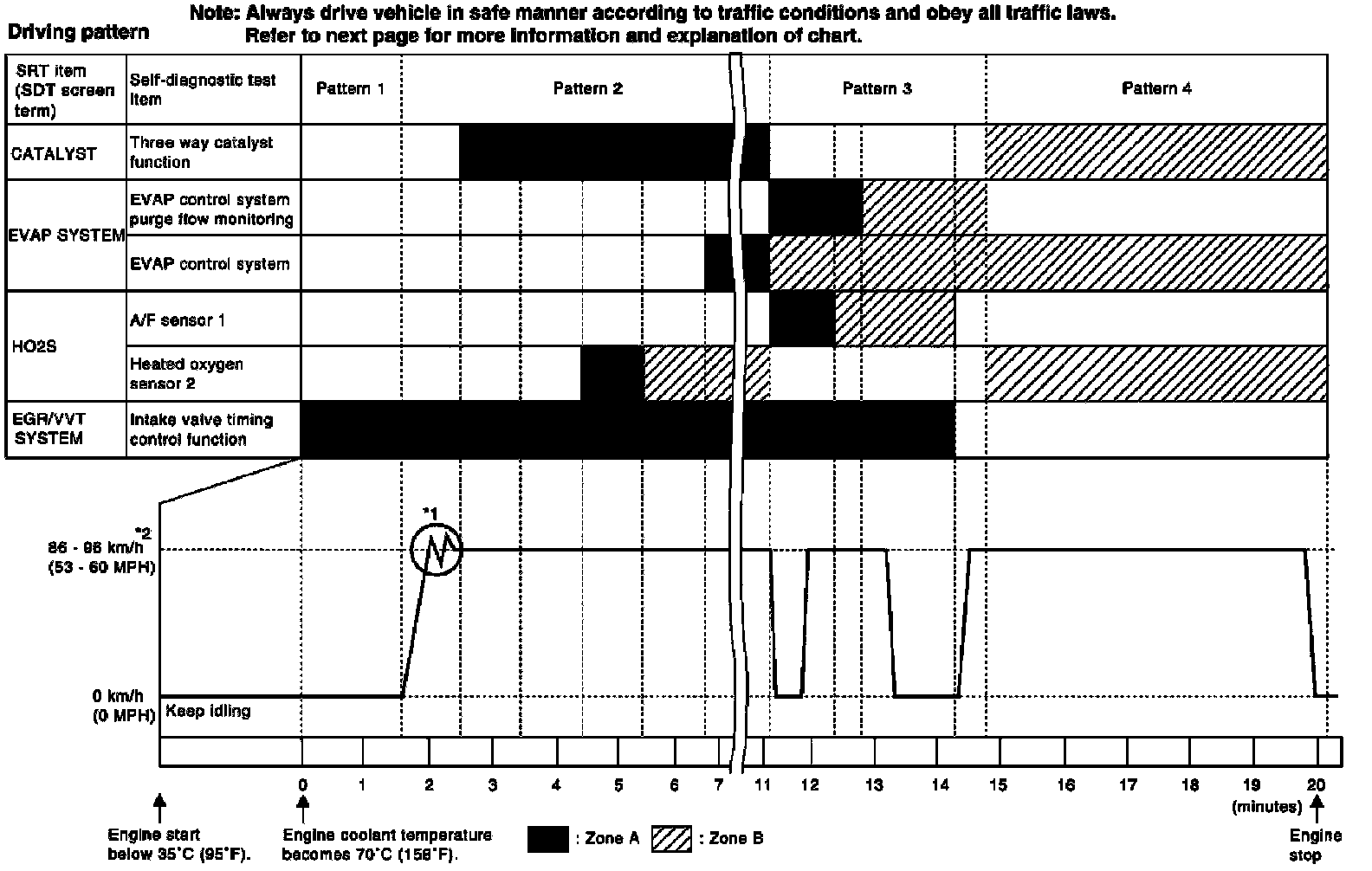 The most efficient driving pattern in which SRT codes can be properly set is explained on the next page. The driving pattern should be performed one or more times to set all SRT codes.