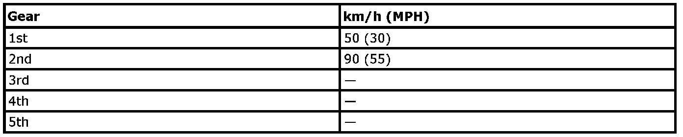Suggested Maximum Speed in Each Gear