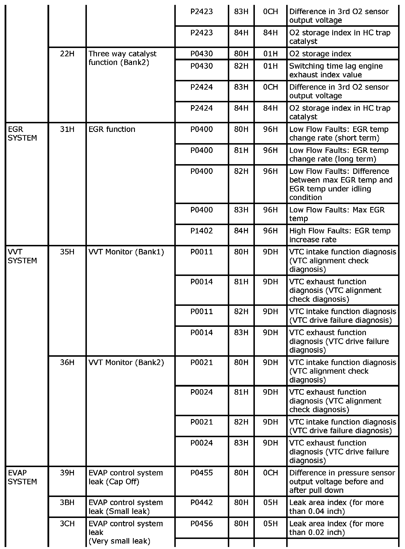 These data (test value and test limit) are specified by On Board Monitor ID (OBDMID), Test ID (TID), Unit and Scaling ID and can be displayed on the GST screen.