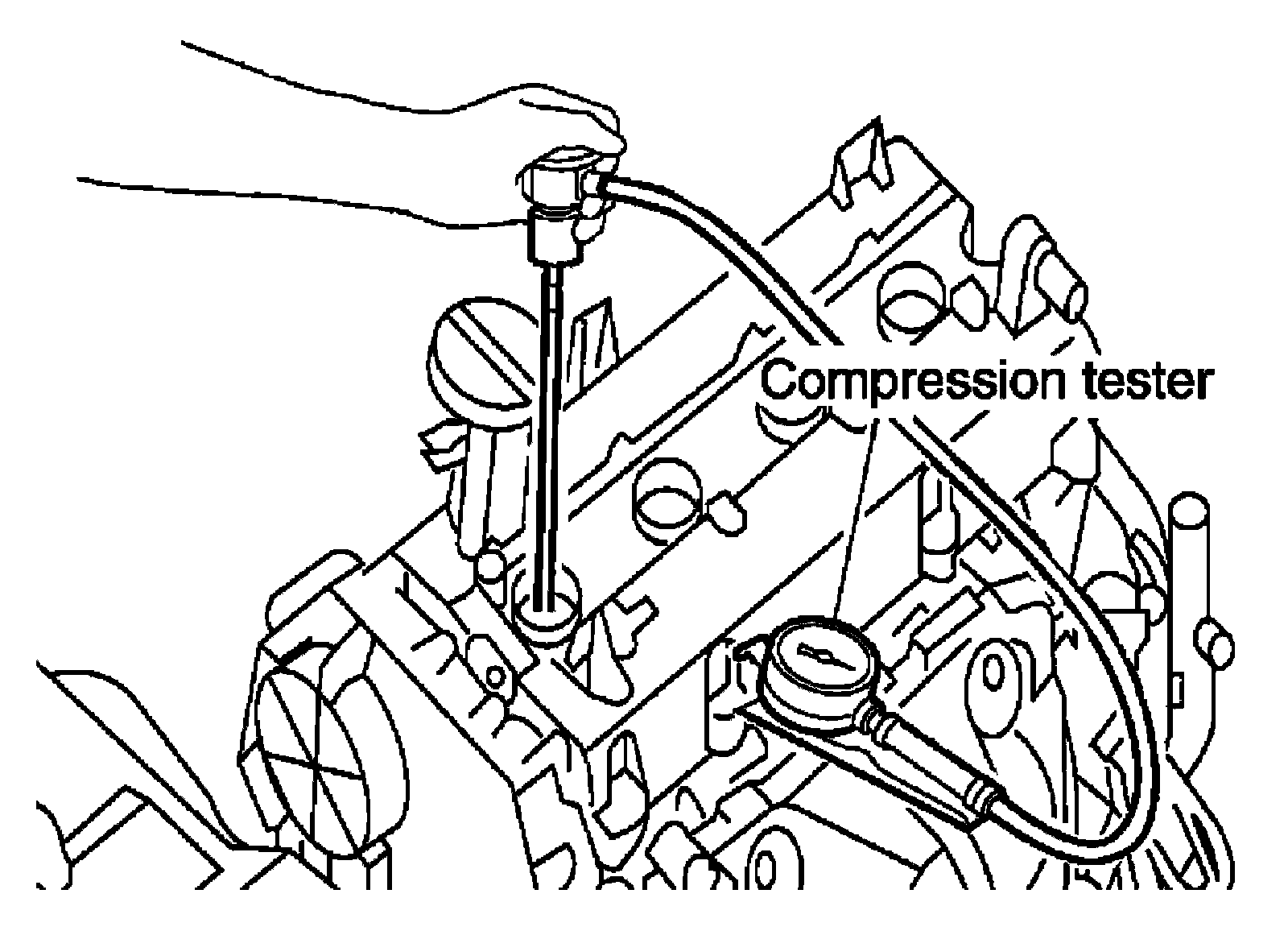 6) Install compression tester with an adapter into spark plug hole.