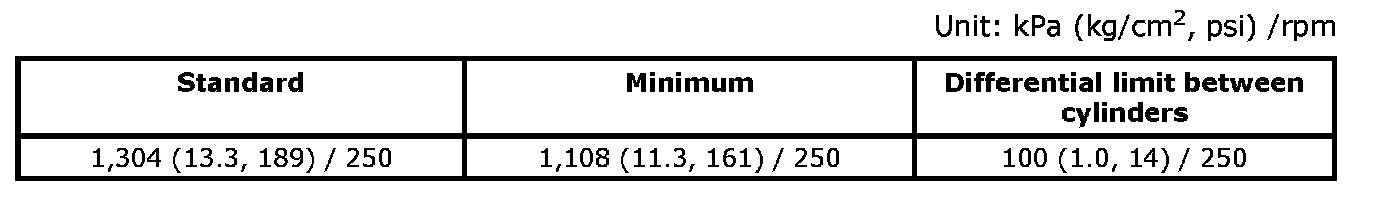 ^ If compression pressure is below minimum value, check valve clearances and parts associated with combustion chamber (valve, valve seat, piston, piston ring, cylinder bore, cylinder head, cylinder head gasket). After the checking, measure the compression pressure again.