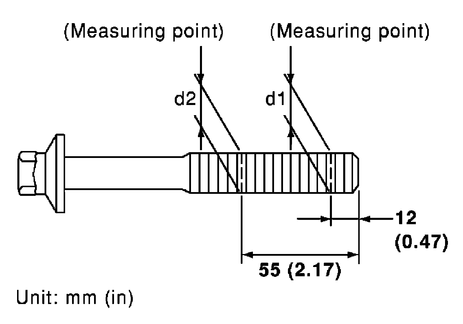 Cylinder Head BoltsWhenever the size difference between (d1) and (d2) exceeds the limit, replace them with a new one.