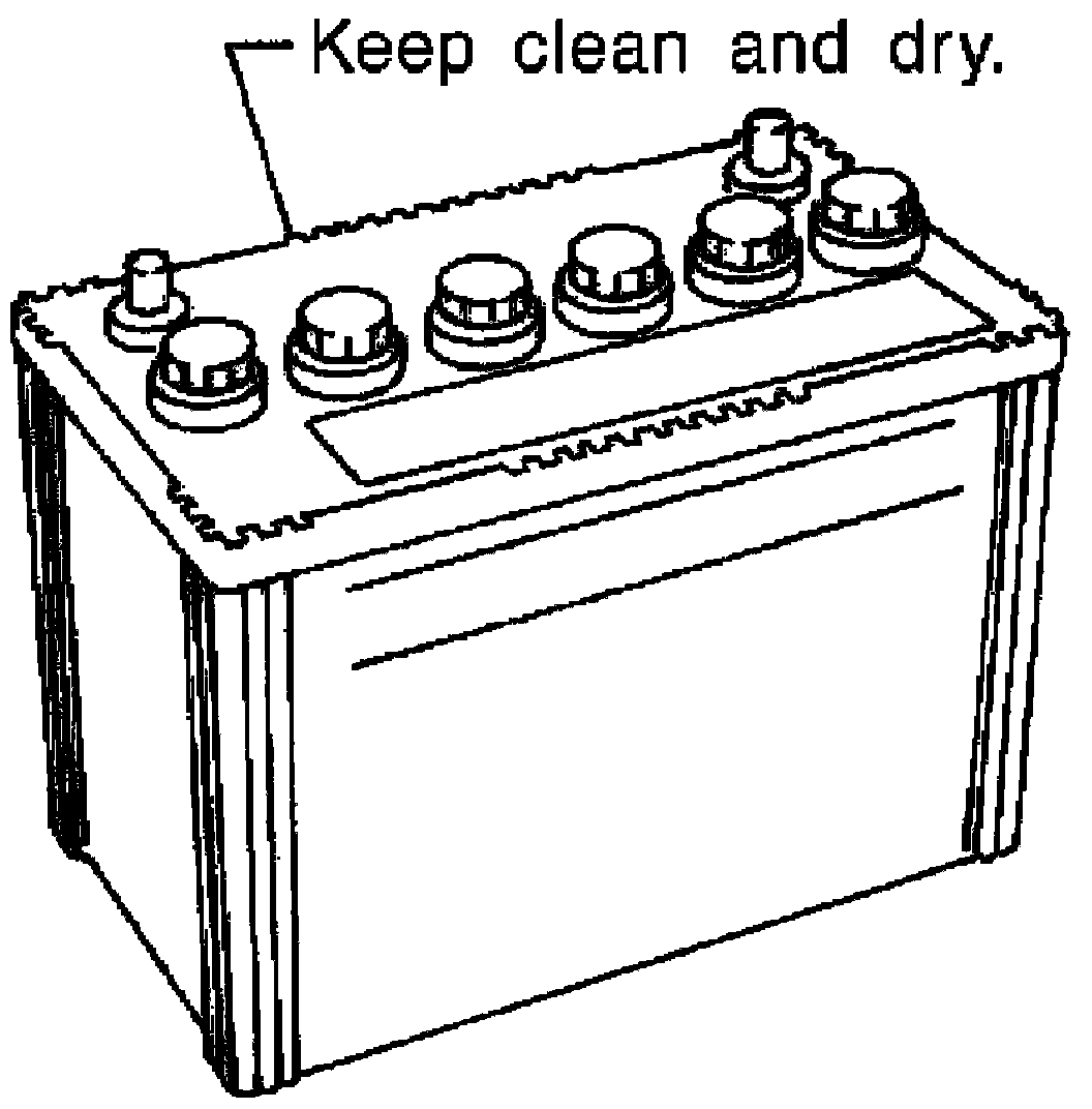 - The battery surface (particularly its top) should always be kept clean and dry.