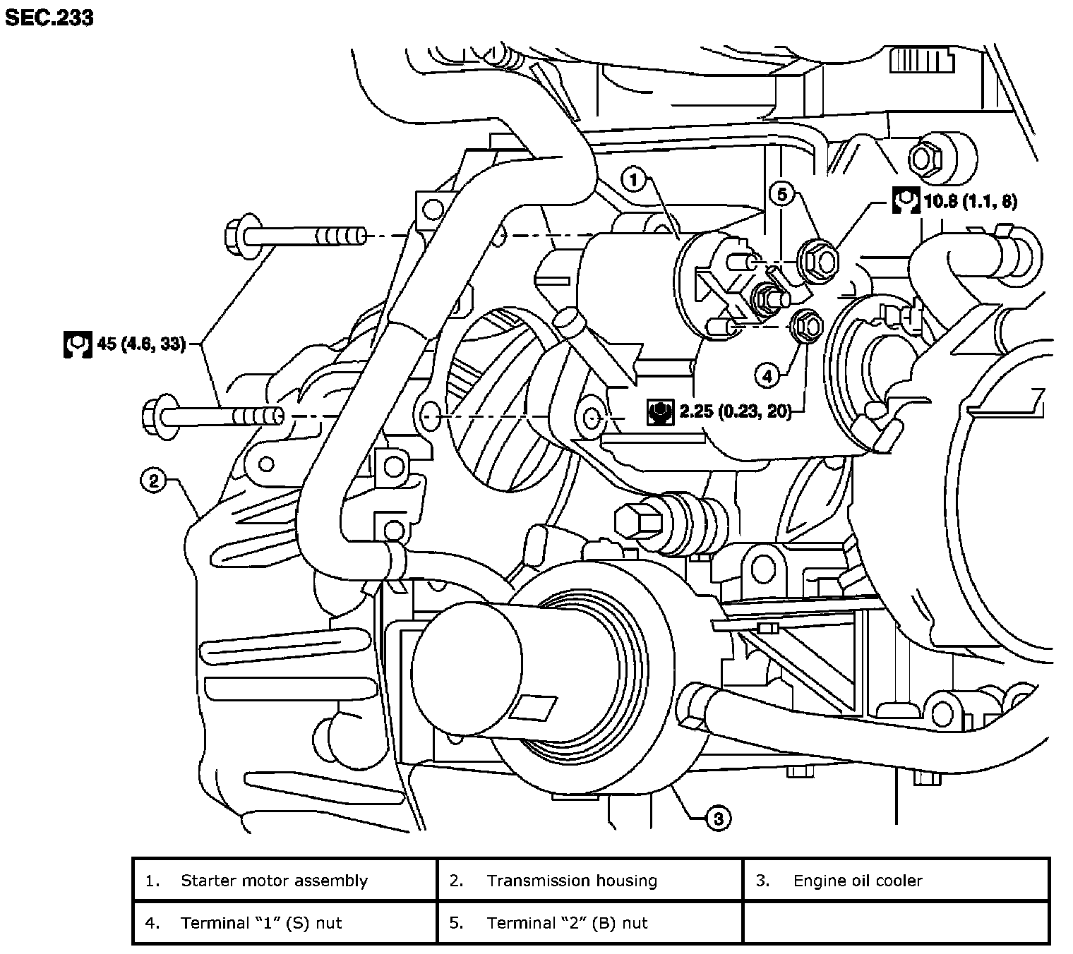 Starter Motor: Removal and Installation (QR25DE)Removal