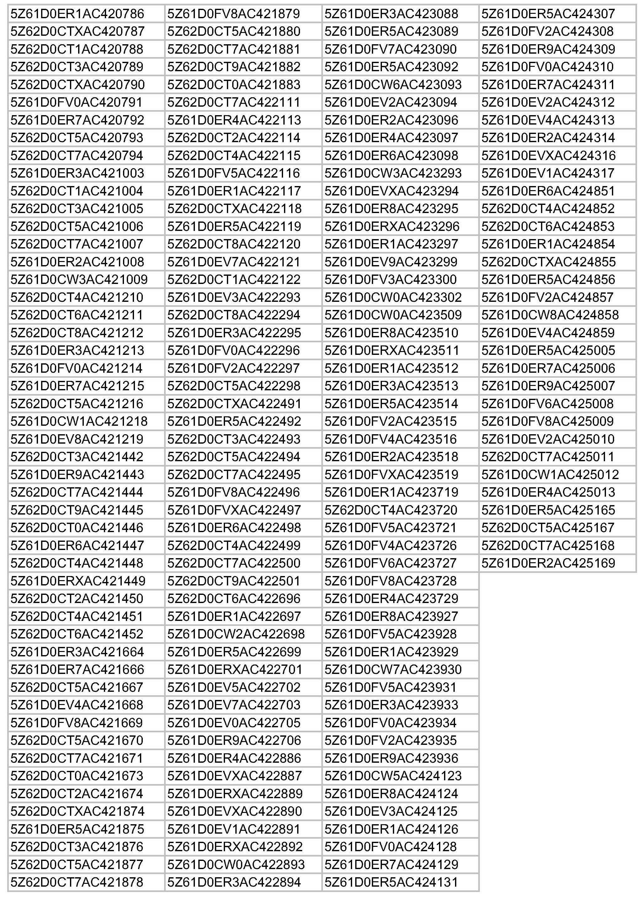 ^ If any of the lower links do not have a clearly identifiable letter in the first three positions of the lot number the vehicle must not be sold until after recall repairs have been performed.