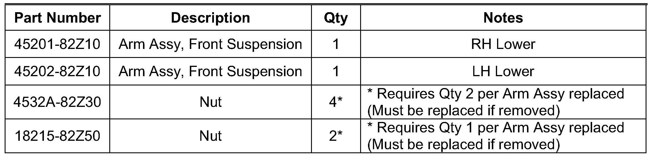Recall NR - Front Lower Control Arm Replacement