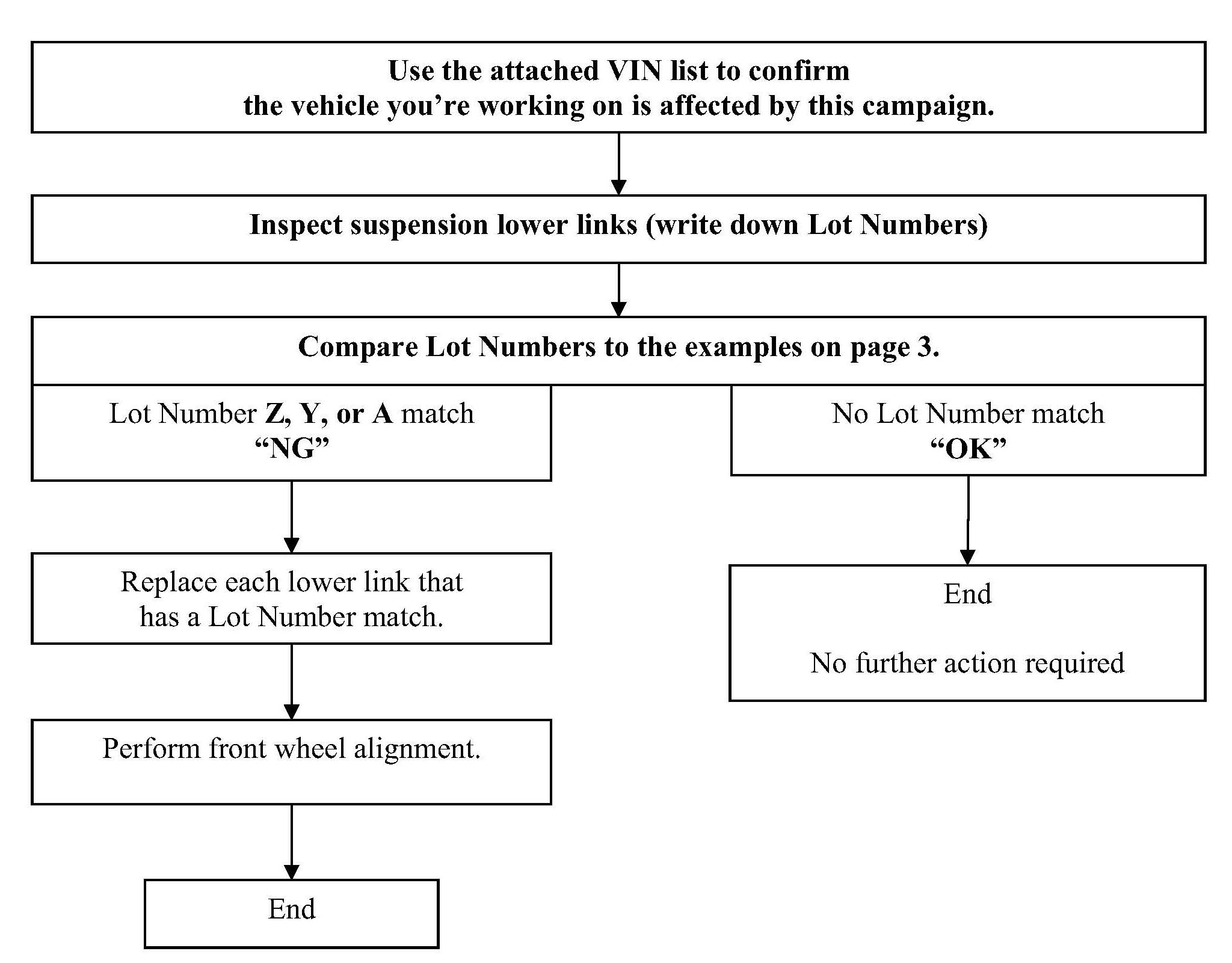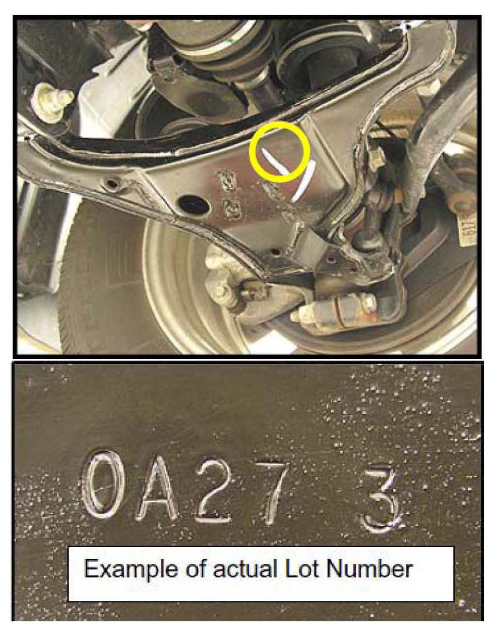 ^ If the lot number is missing on any of the lower links, the vehicle must not be sold until after recall repairs have been performed.