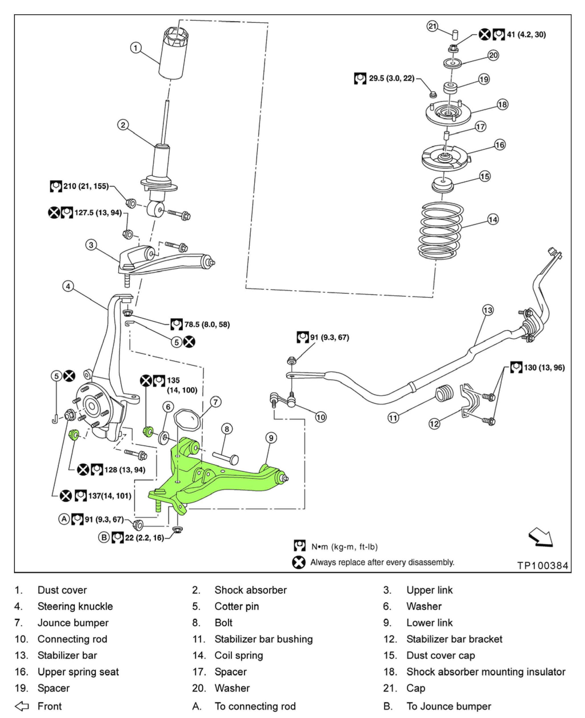 > Make sure to replace both lower link nuts with new ones. New nuts are listed in the Parts Information.