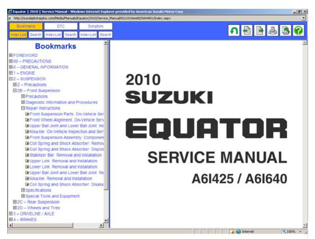 Suzuki is conducting a Voluntary Safety Recall Campaign on model year 2010 EQUATOR vehicles. Some of these vehicles may have welds on front suspension lower links that are out of specification. To address this, Suzuki will inspect, and if necessary, replace the suspension lower links at no charge for parts or labor.