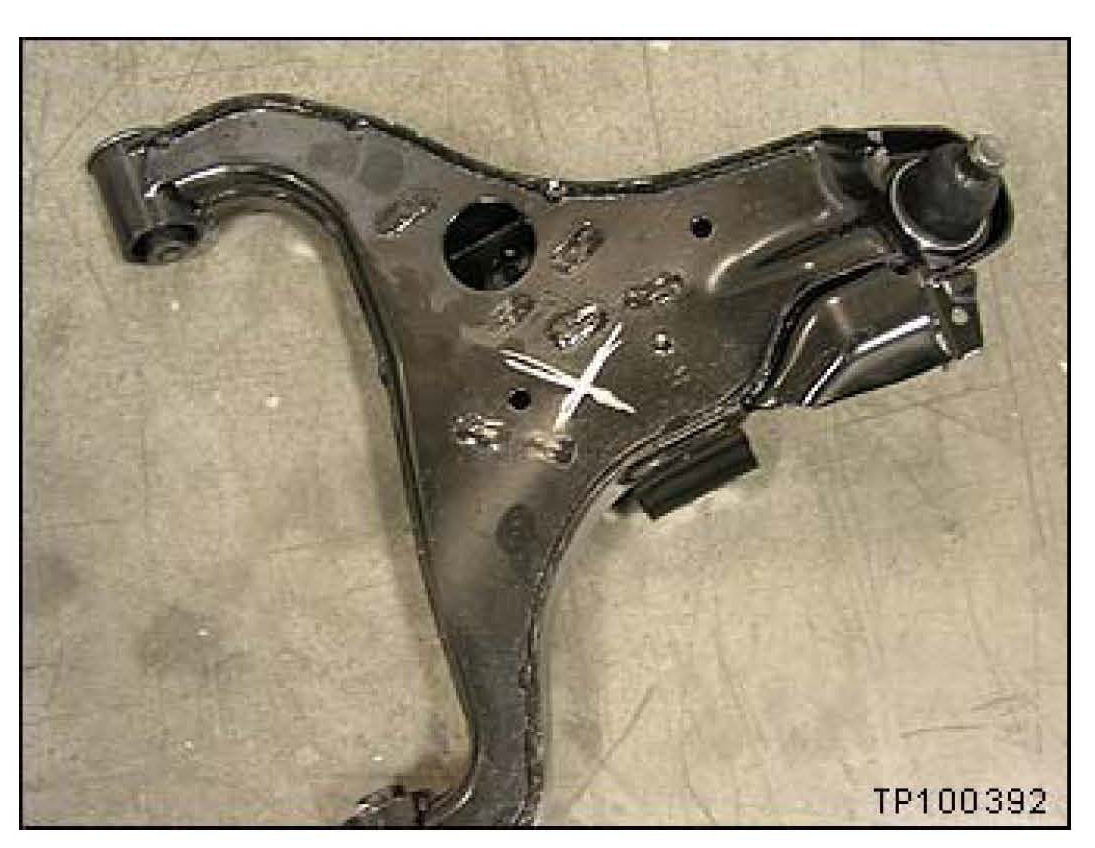 2. Look for the "Lot Number" stamped into the underside of the front lower suspension arm assembly and write it down (this must be written on the repair order).