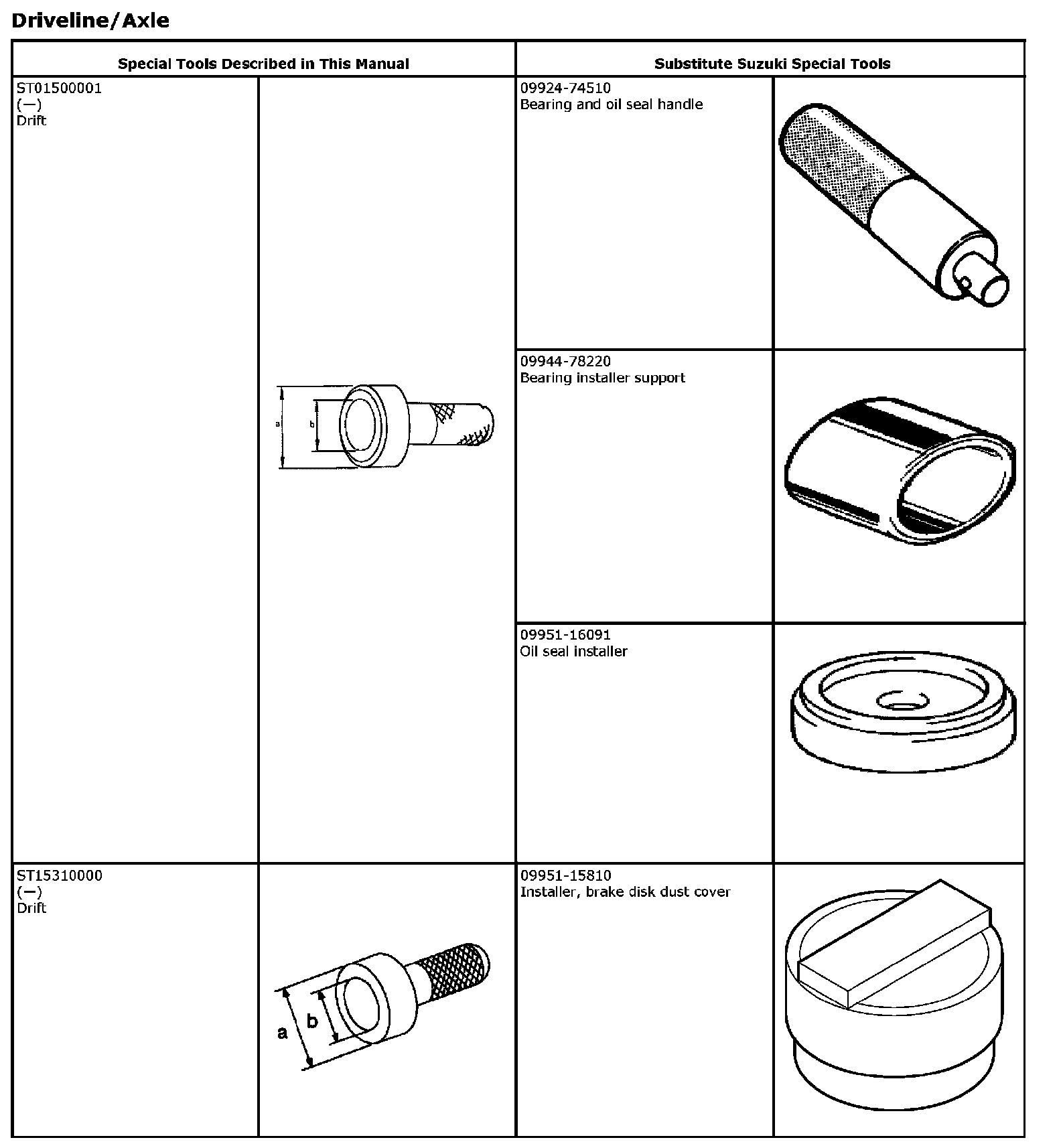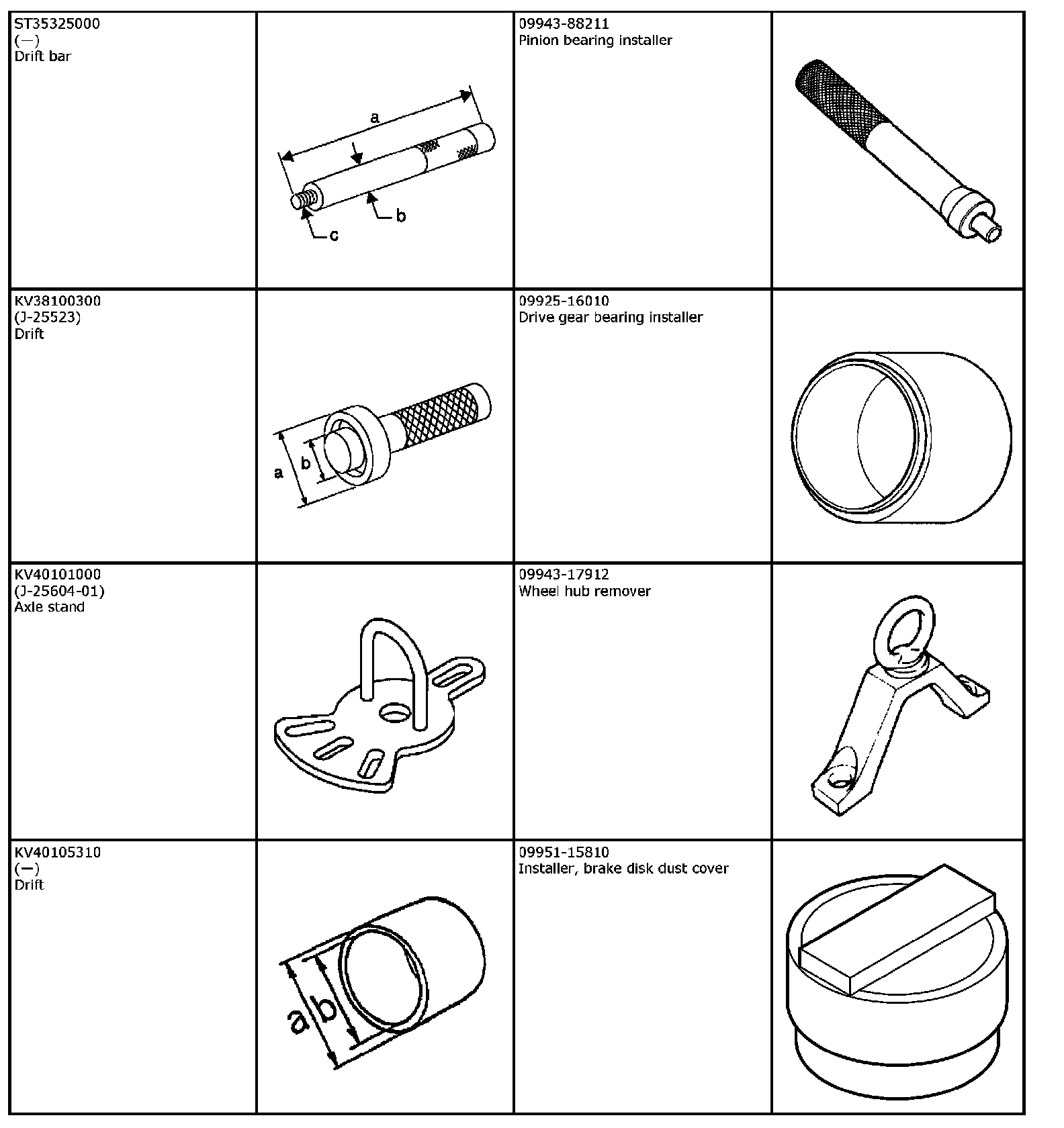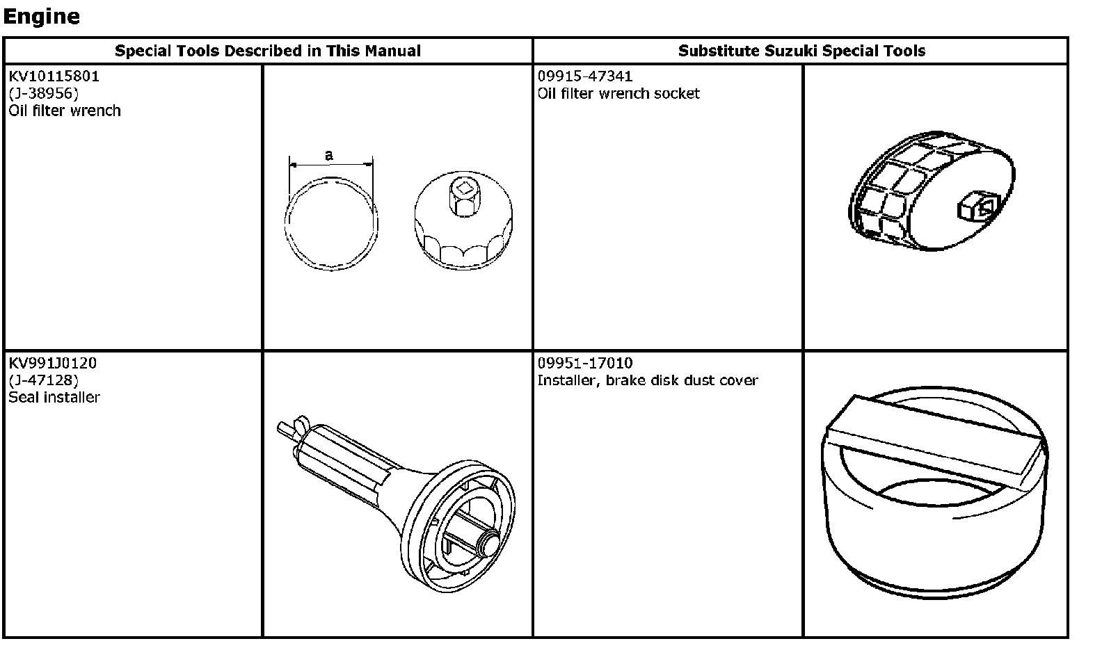 The substitute special tools below are usable instead of the special tools described.