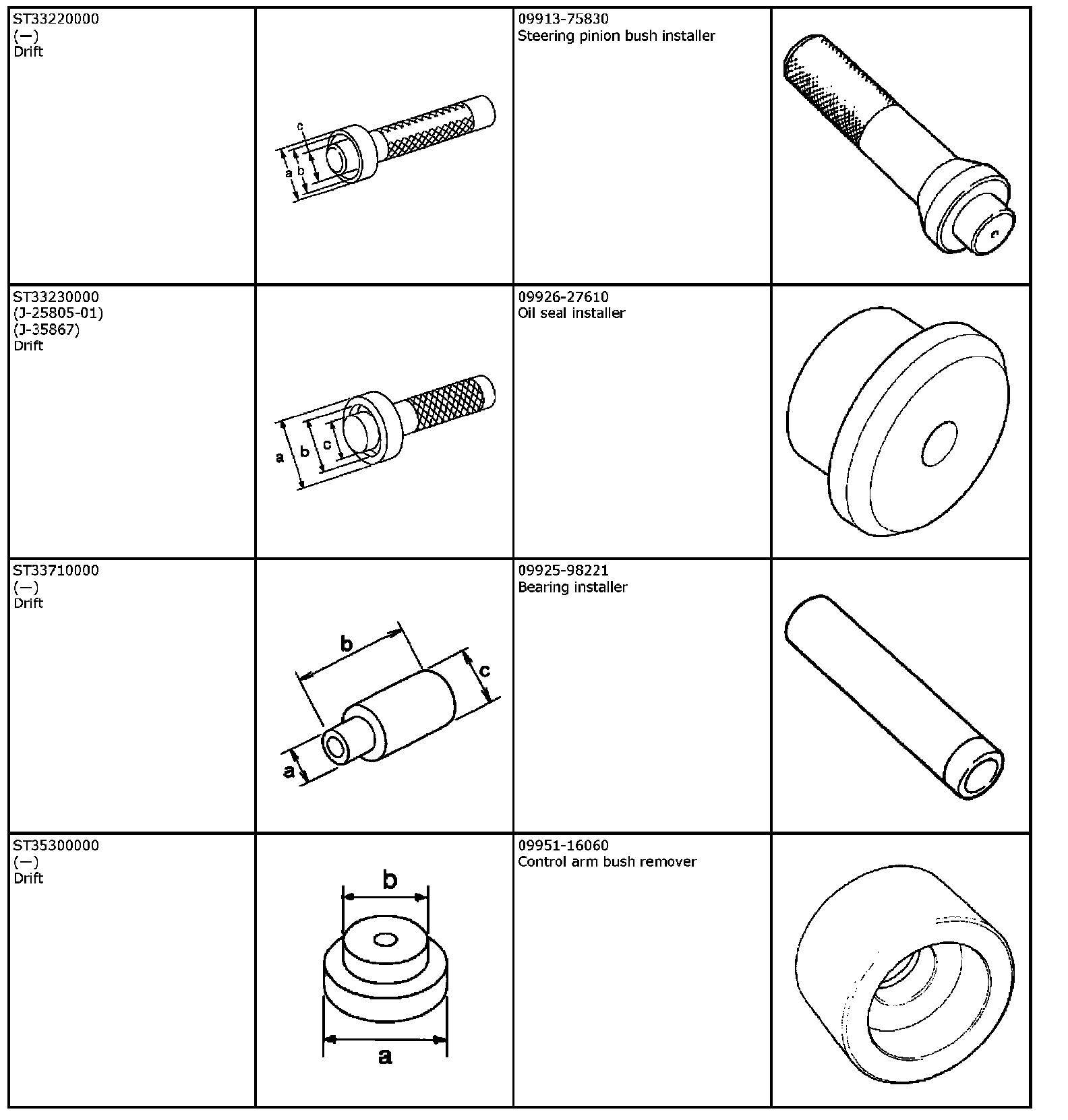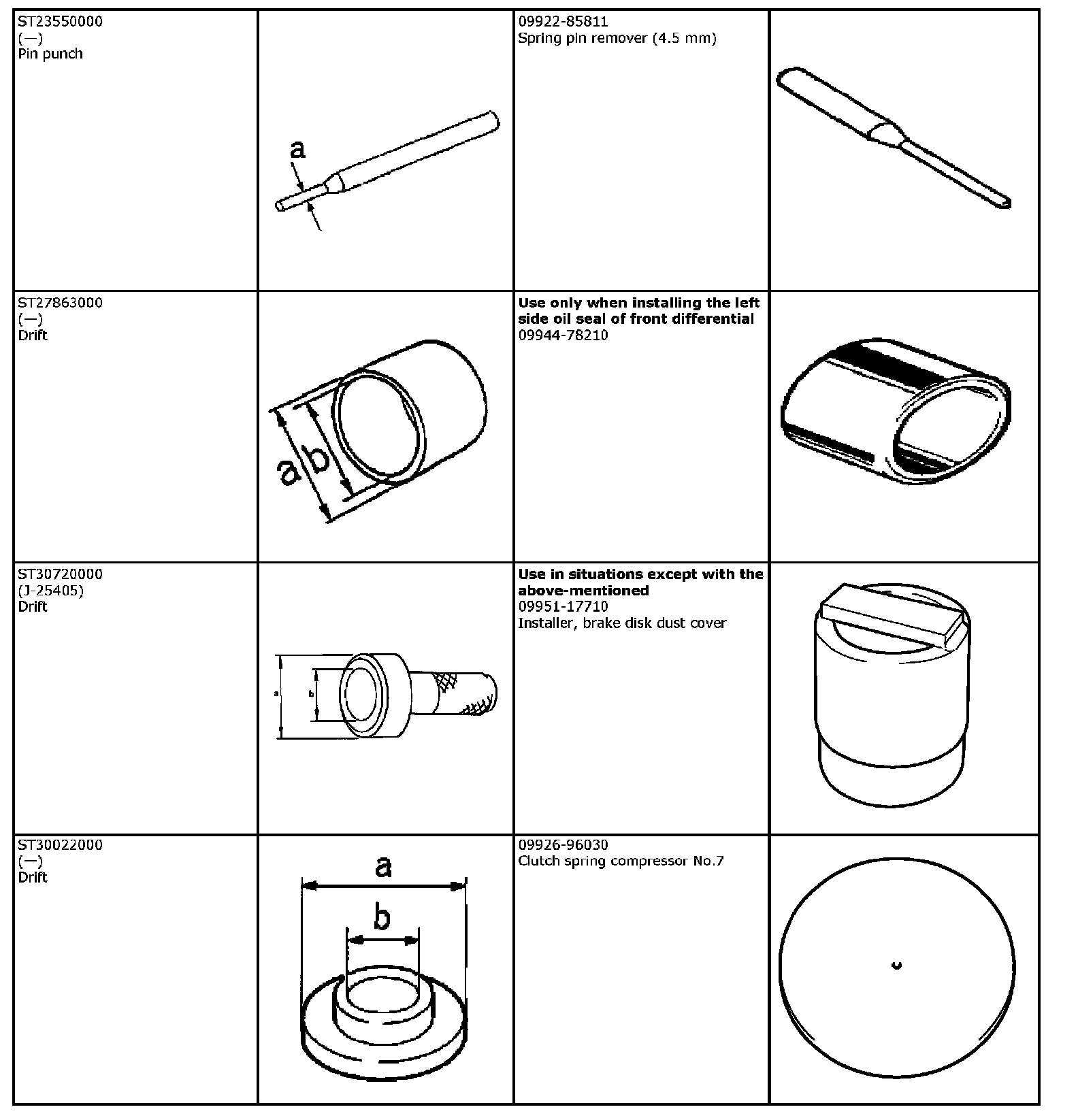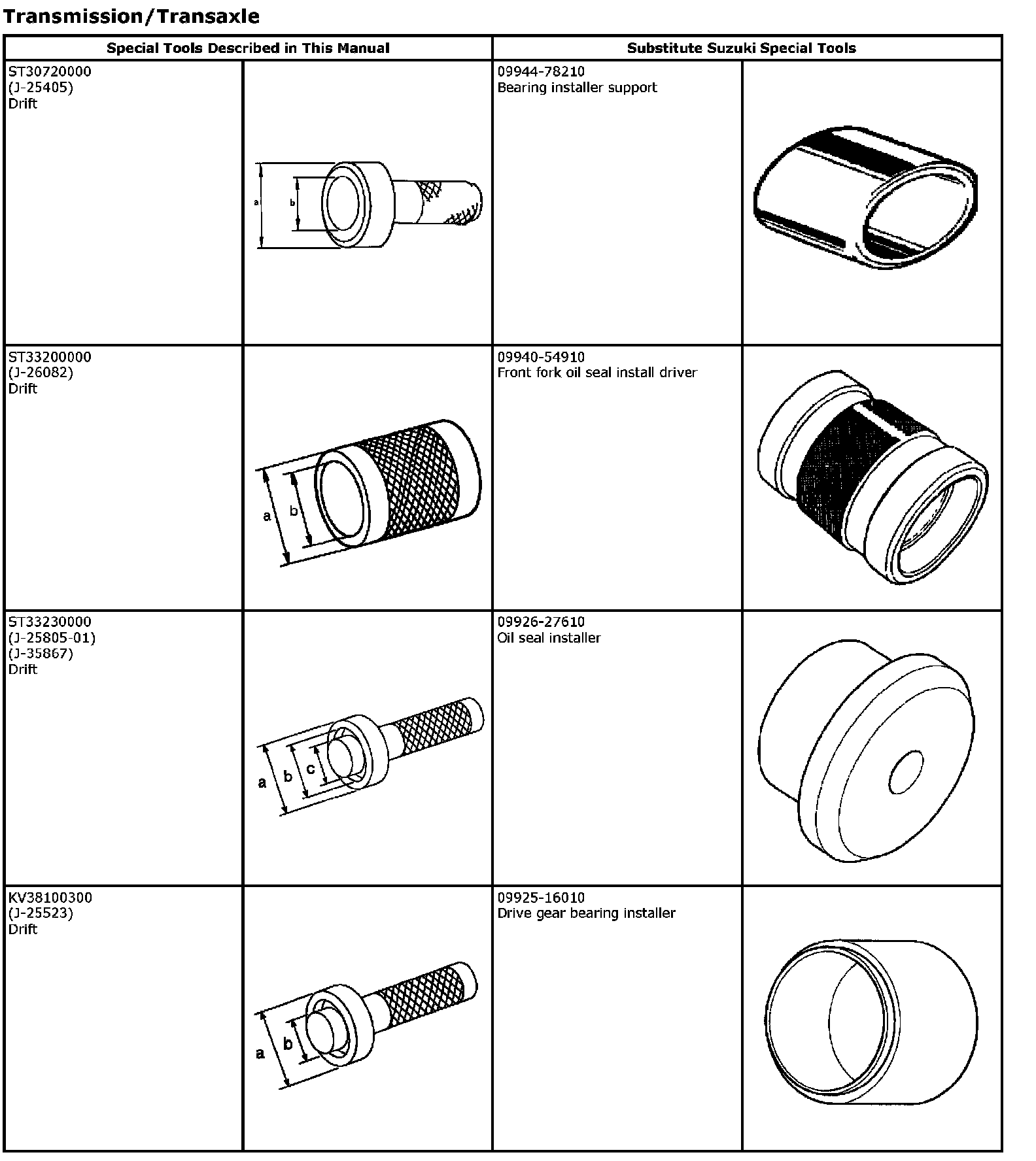 The substitute special tools below are usable instead of the special tools described.