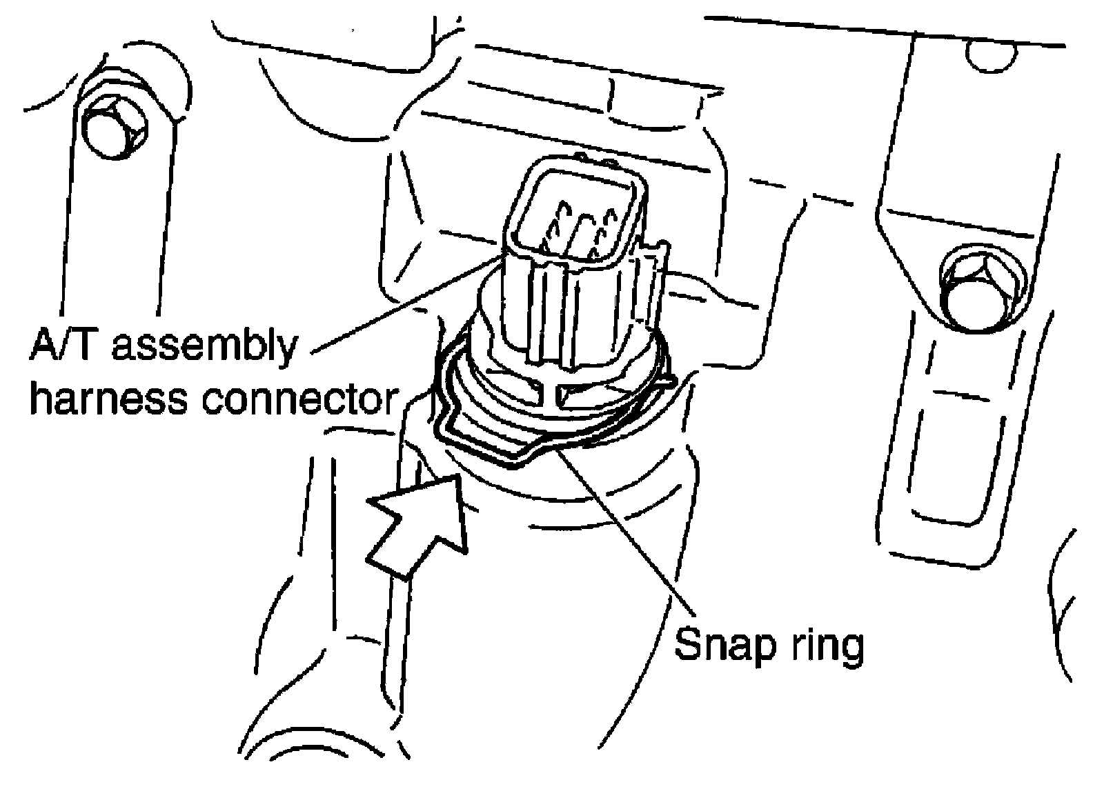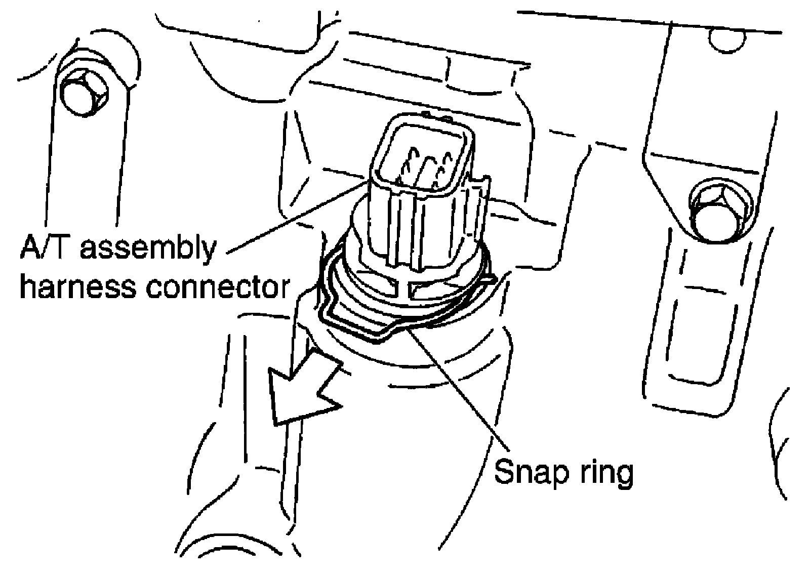 4) Remove snap ring from A/T assembly harness connector.