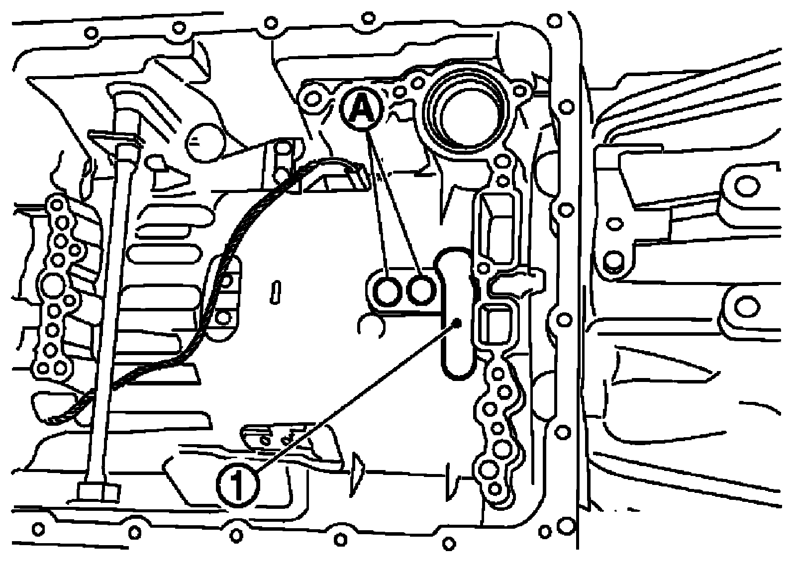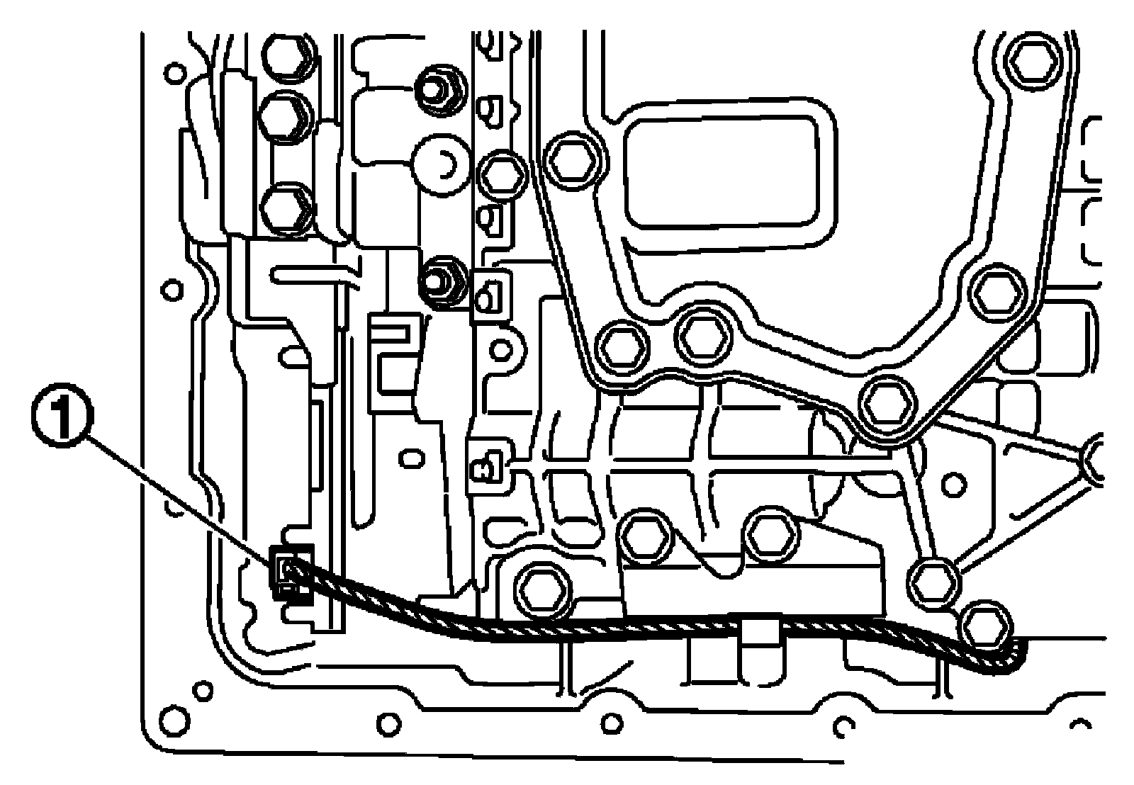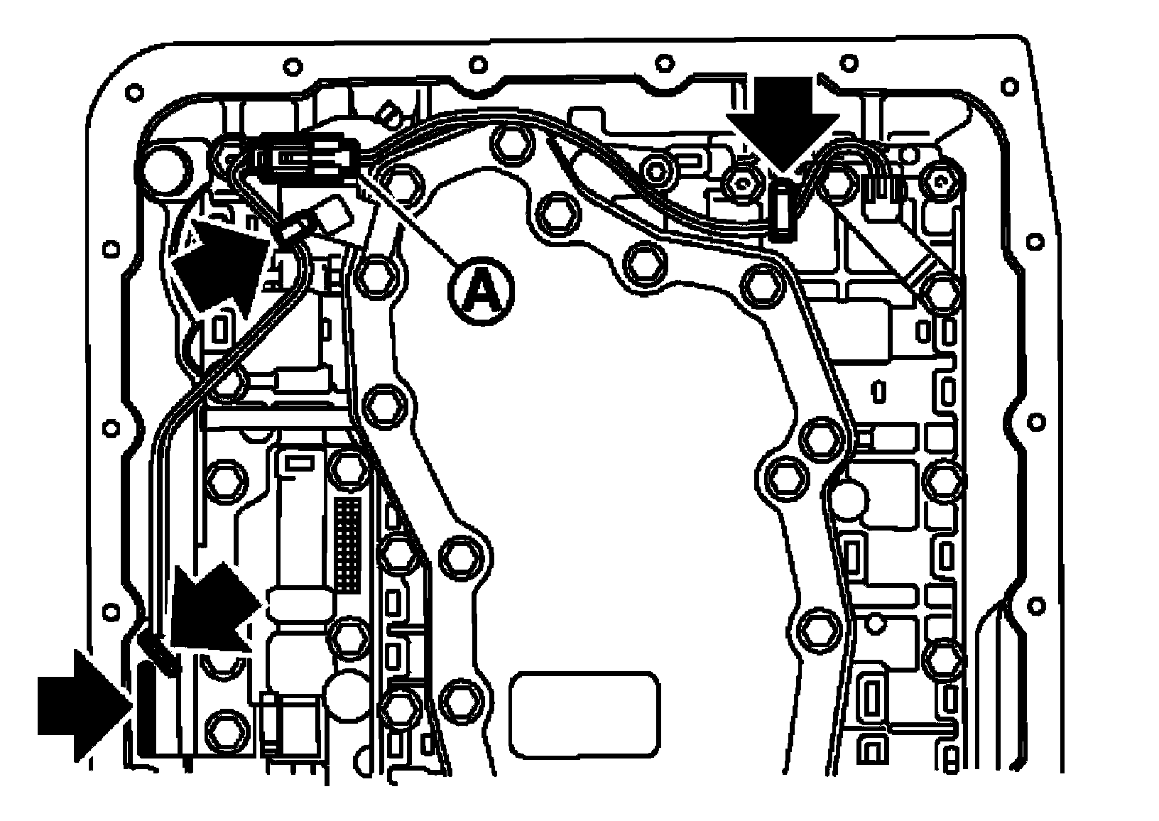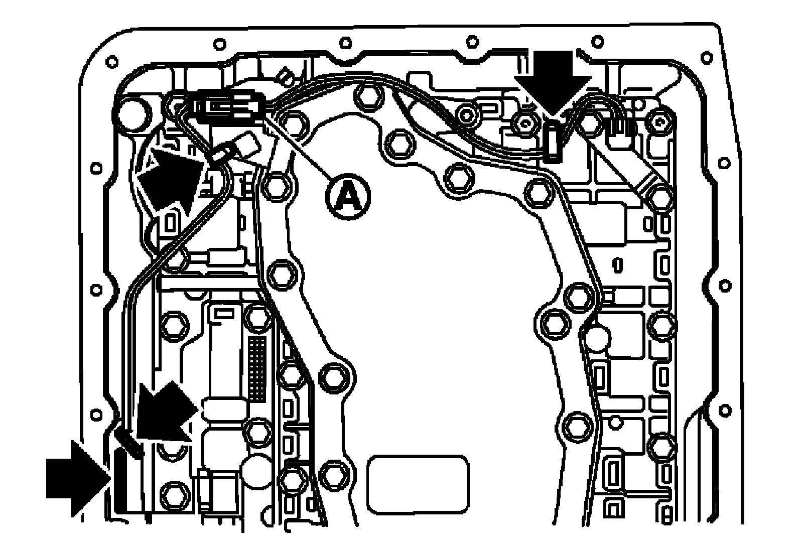 ^ Hang down output speed sensor harness toward outside so as not to disturb installation of control valve with TCM.