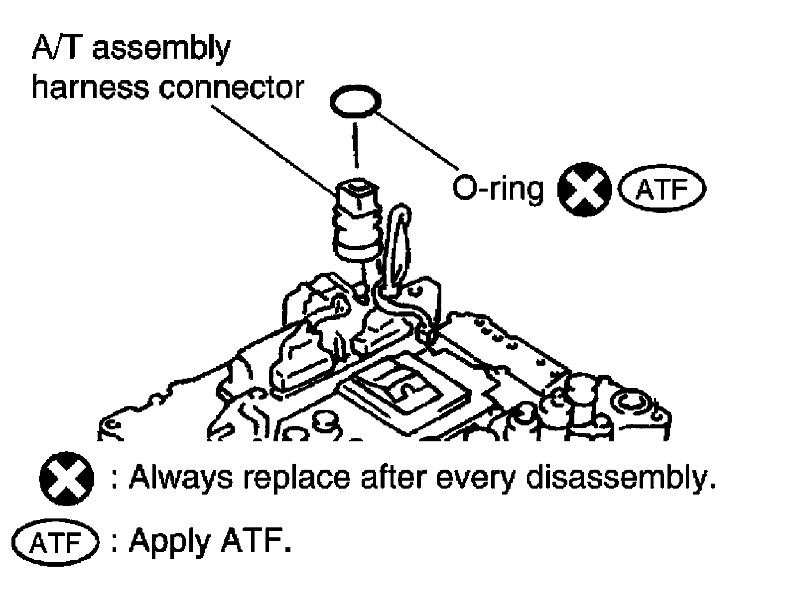 13) Remove O-ring from A/T assembly harness connector.