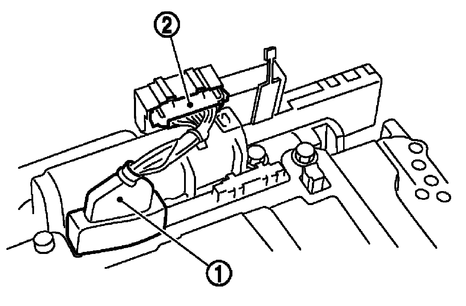 1) Connect TCM connector (1) and transmission range switch connector (2).