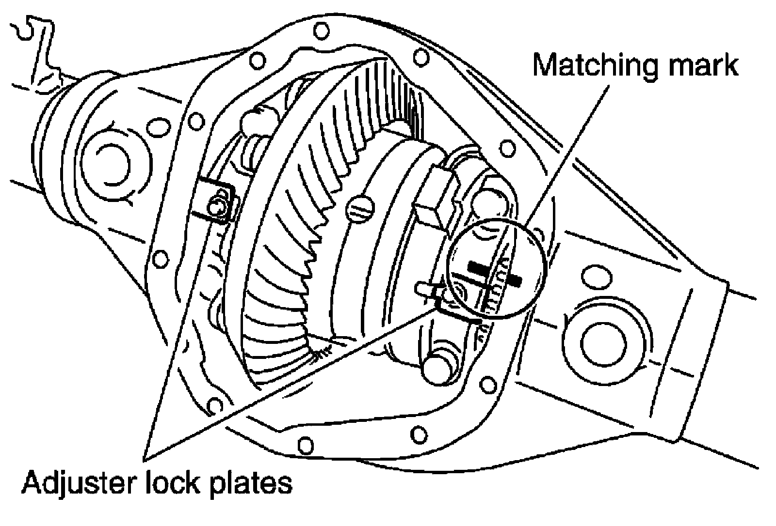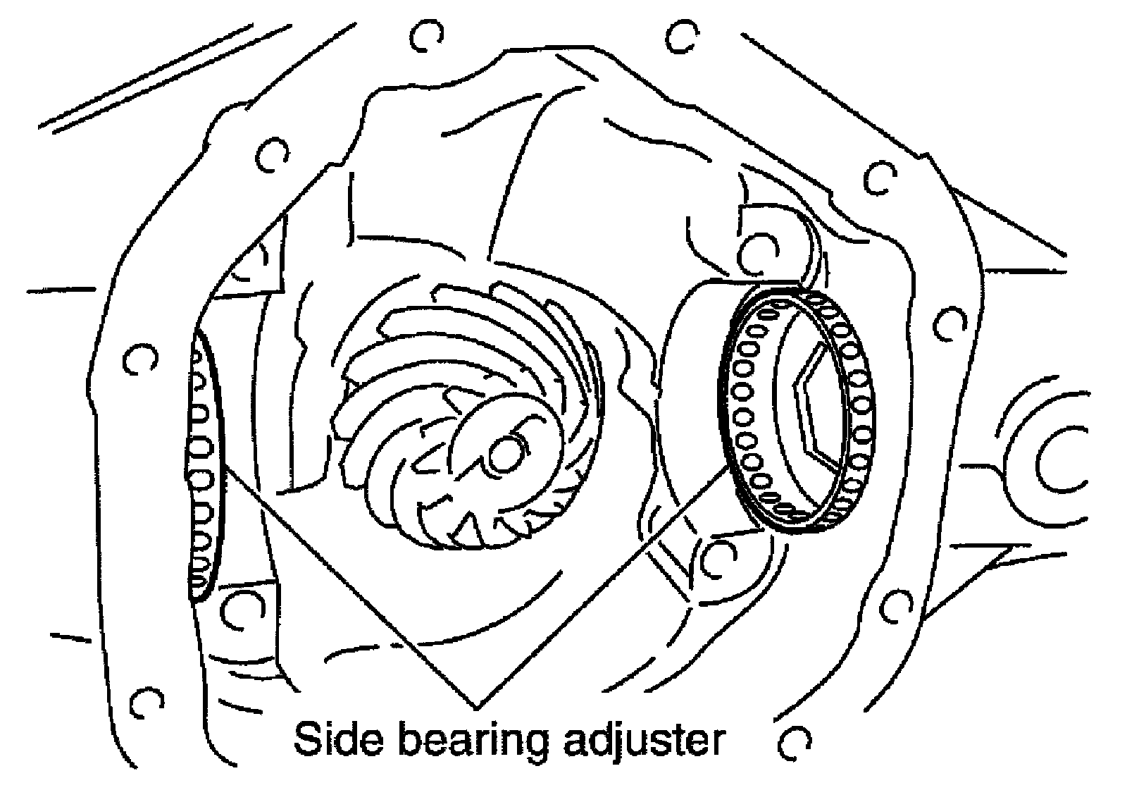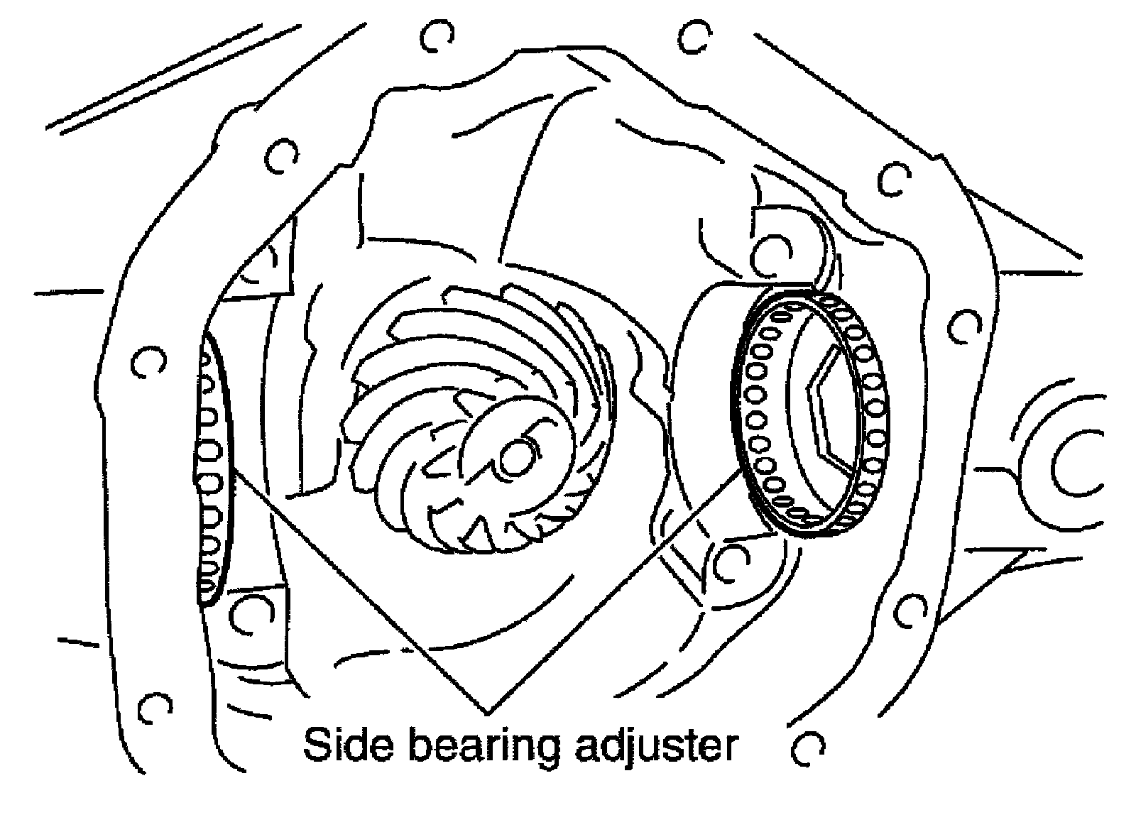 Do not tighten at this point. This allows further tightening of side bearing adjusters.