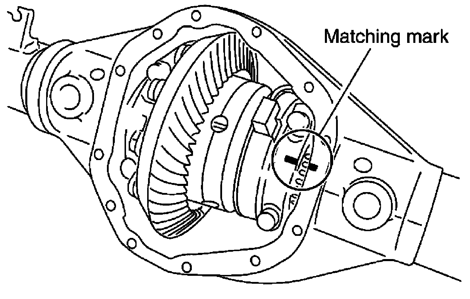 ^ Side bearing caps are line-board for initial assembly. The matching marks are used to install them in their original positions.