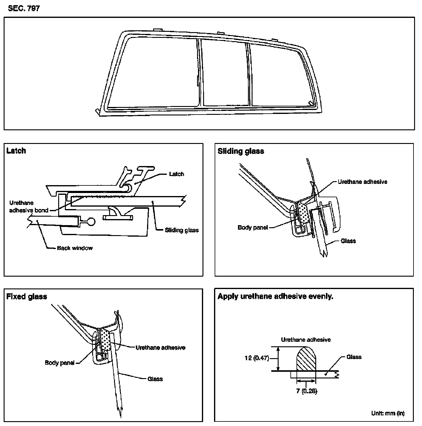 - Driving the vehicle before the urethane adhesive has completely cured may affect the performance of the rear window in case of an accident.