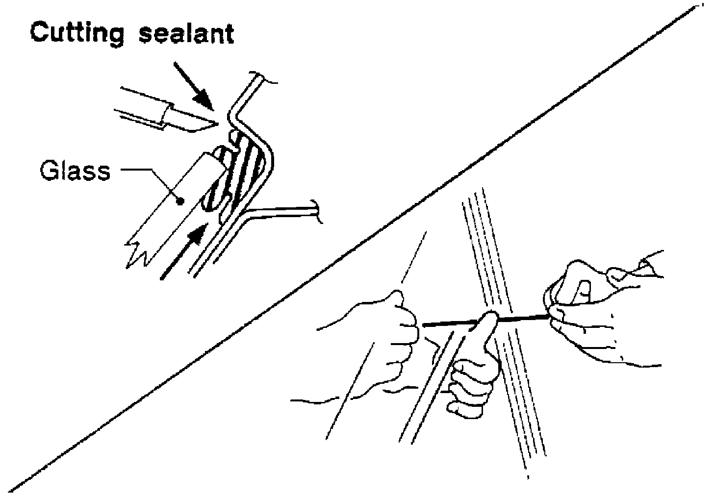 WARNING: When cutting the glass from the vehicle, always wear safety glasses and heavy gloves to help prevent glass splinters from entering your eyes or cutting your hands.