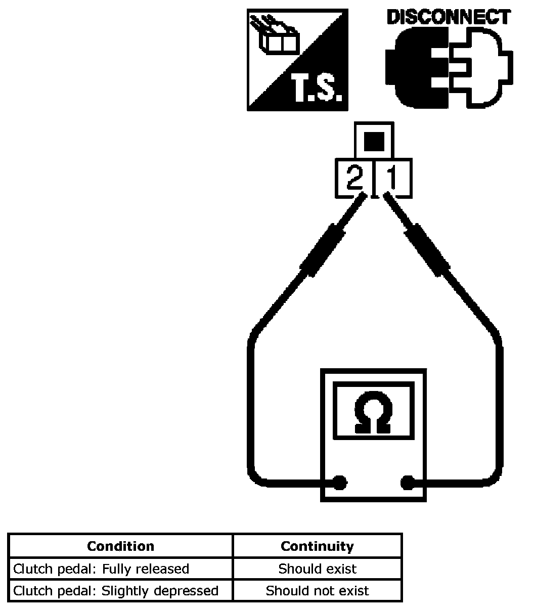 3. Check harness continuity between ASCD clutch switch terminals 1 and 2 under the following conditions.