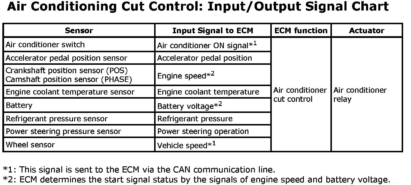 Air Conditioning Cut Control: Input/Output Signal ChartAir Conditioning Cut Control: System Description