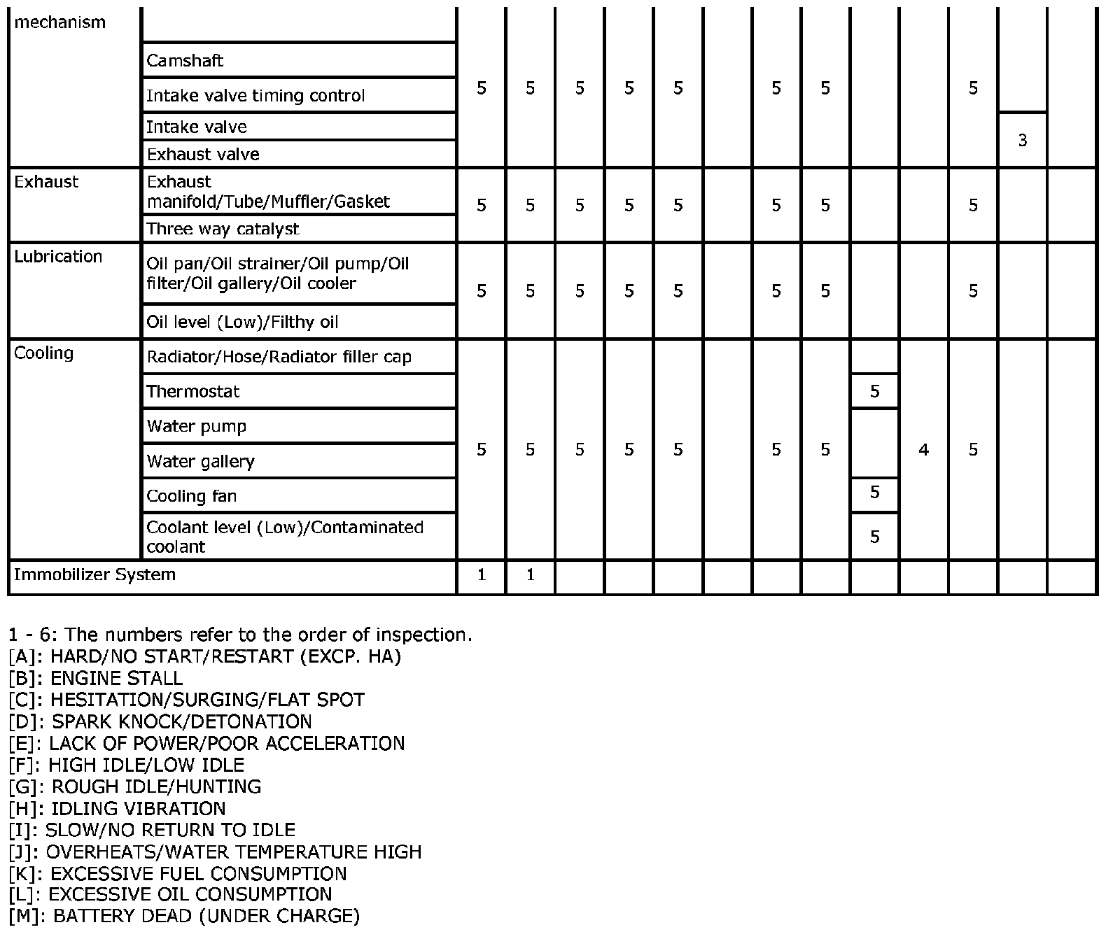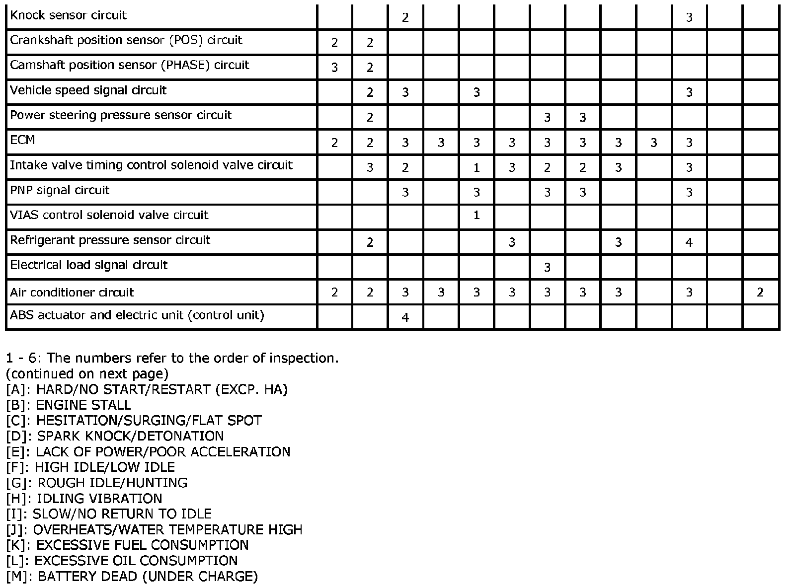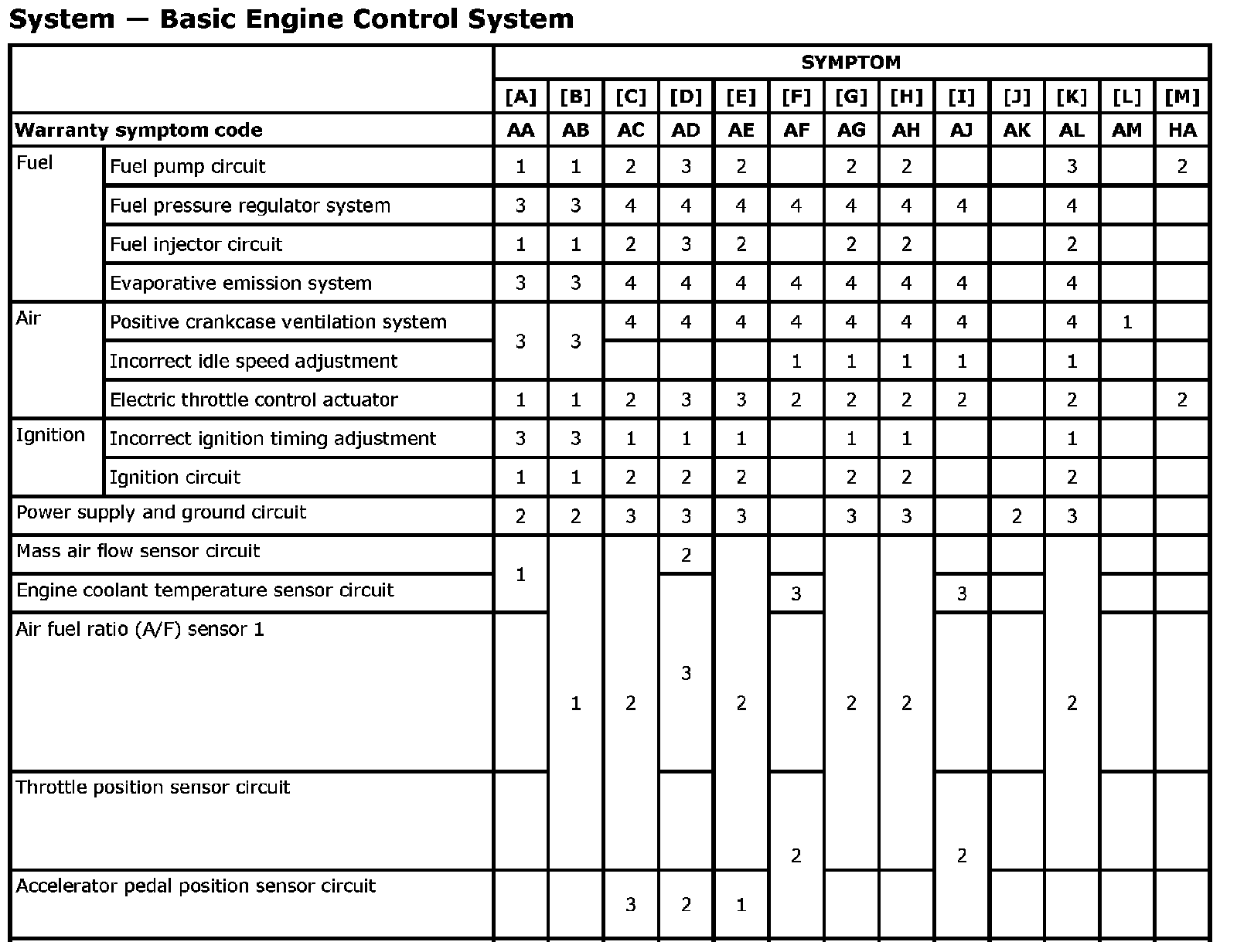 Engine Control System Symptoms: Symptom Matrix ChartSystem- Basic Engine Control System (Part 1):