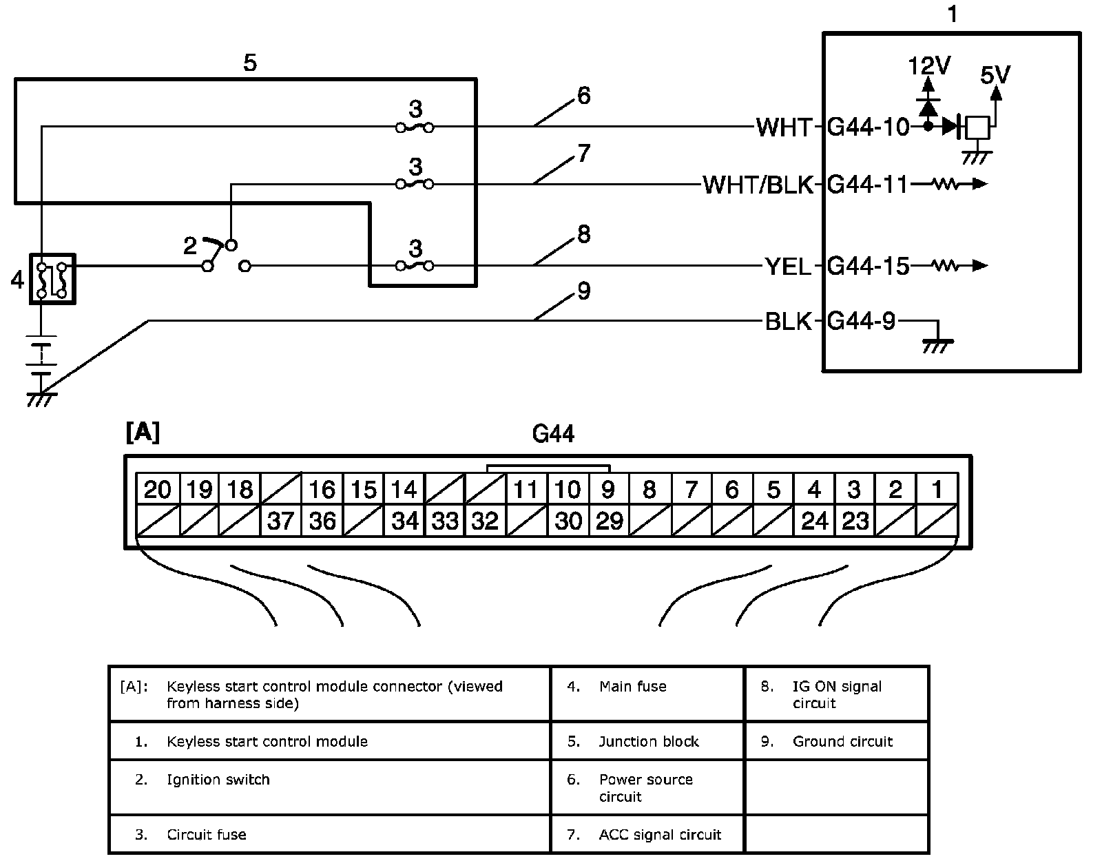 Keyless Start Control Module Power and Ground Circuit Check
