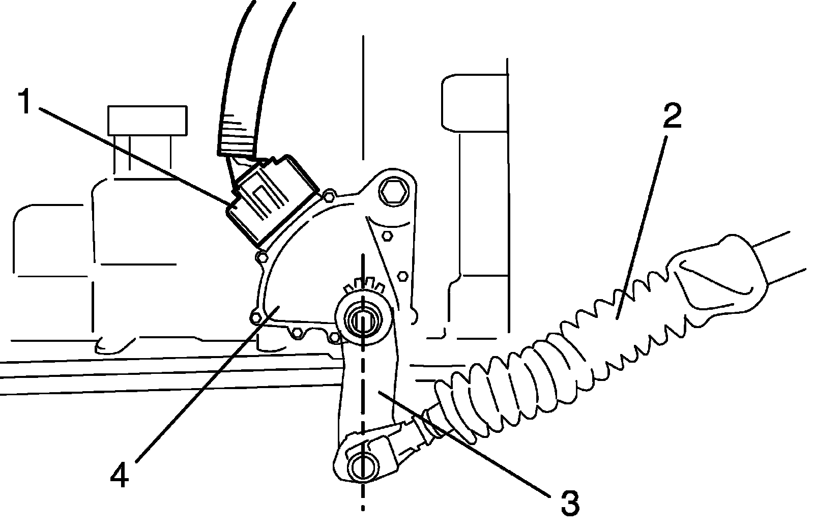 1) Install transmission range sensor (3) and tighten sensor bolt (4) temporarily.