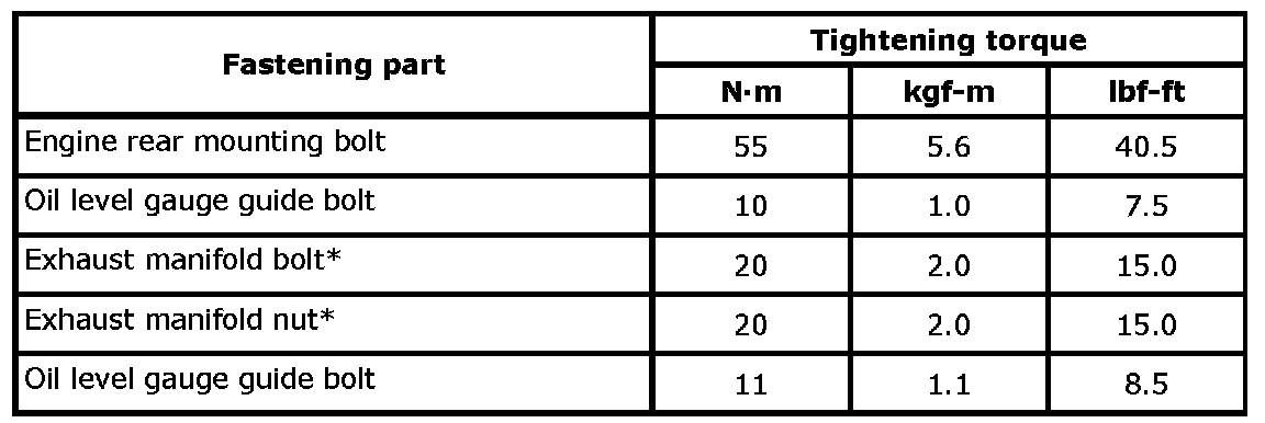 Tightening Torque SpecificationsCAUTION: For fastener with * (asterisk) below, be sure to tighten it according to specified procedure in "Repair Instructions".